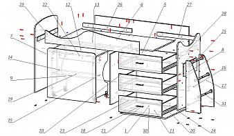 Кровать-чердак с рабочей зоной Клаус 13 BMS