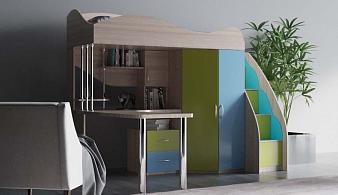 Детская кровать-чердак Миф 11.4 с полками BMS