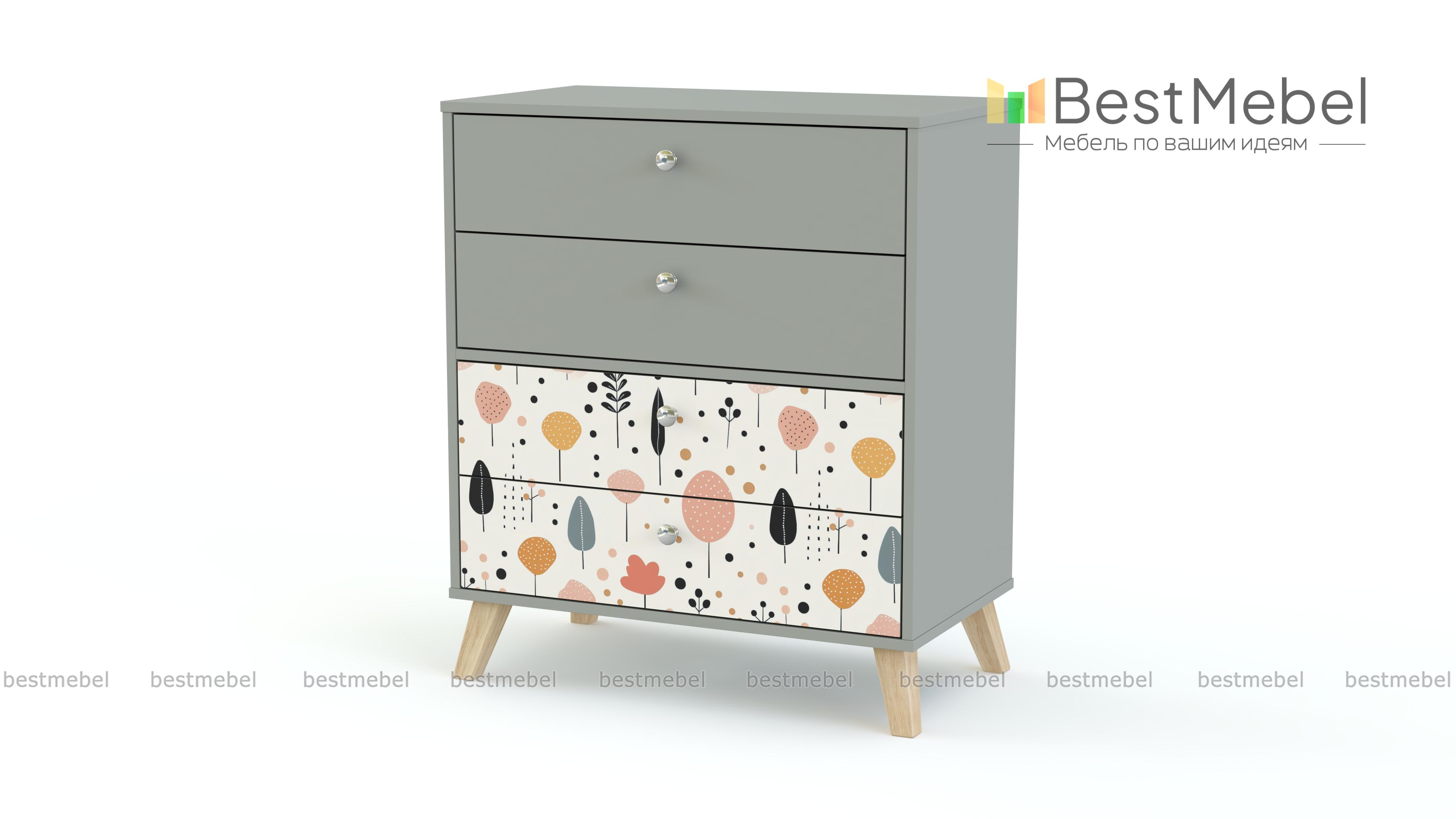 Комод Эльза 1 BMS подходит не только для хранения белья и одежды, но и игрушек, материалов для творчества и учебы. Модель на деревянных сканди-ножках имеет классическую конструкцию с четырьмя выдвижными ящиками и компактные размеры, оптимальные для детской. Нижние фасады комода выделены стильным пастельным рисунком, стойким и не выгорающим на солнце. Купить комод Эльза 1 BMS с выбором нужных размеров, цвета и фурнитуры вы сможете недорого в нашем интернет-магазине.