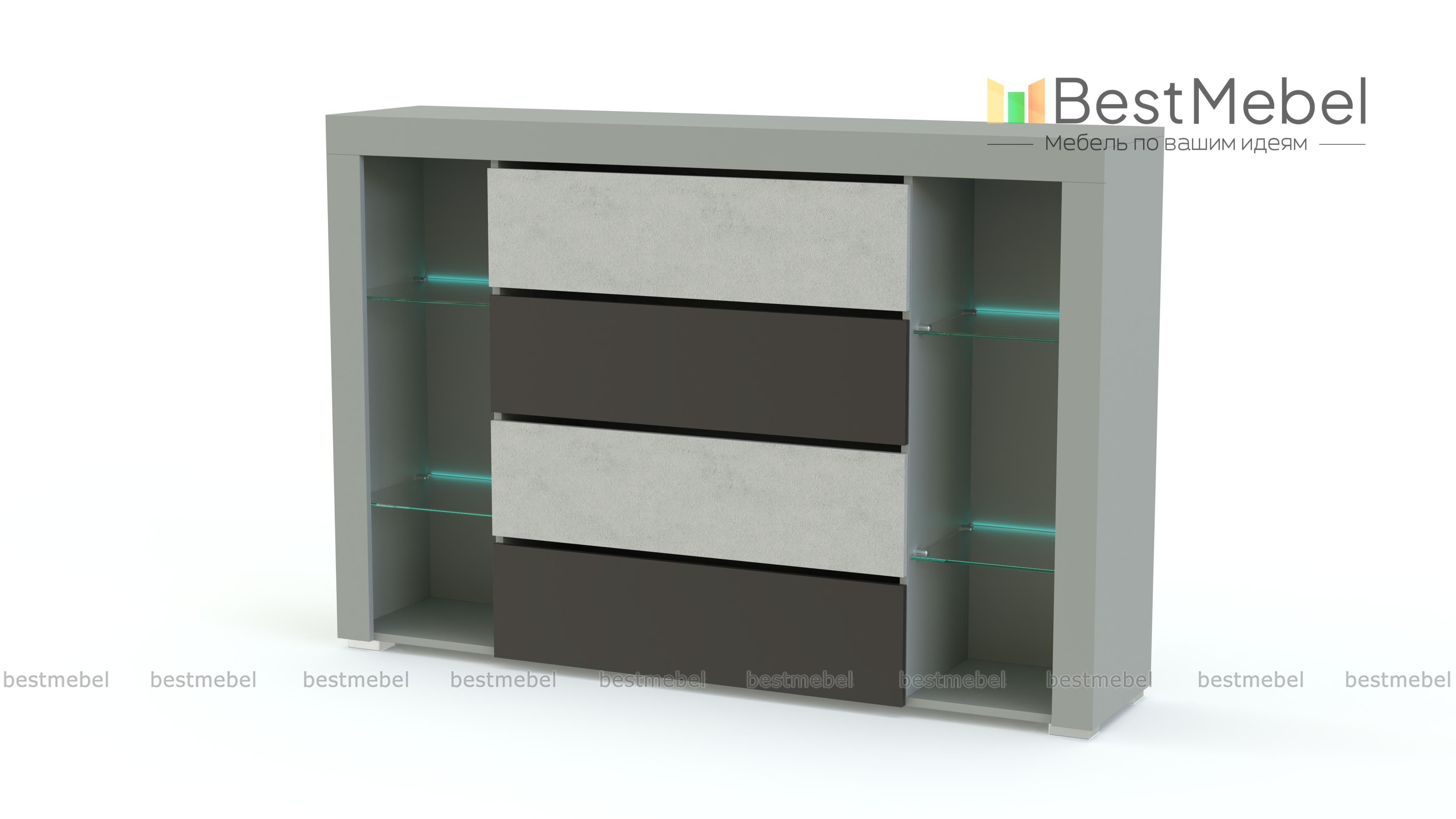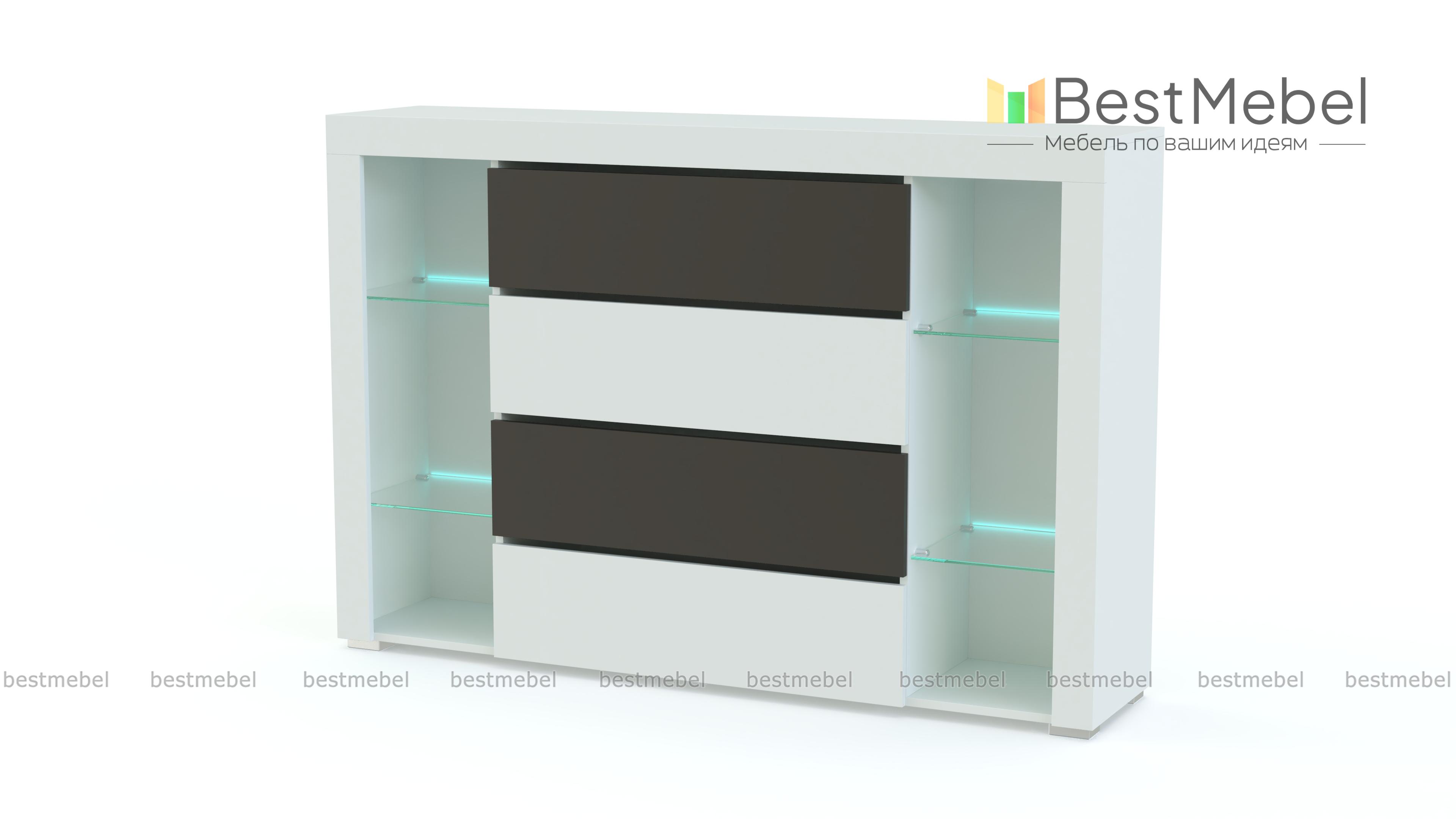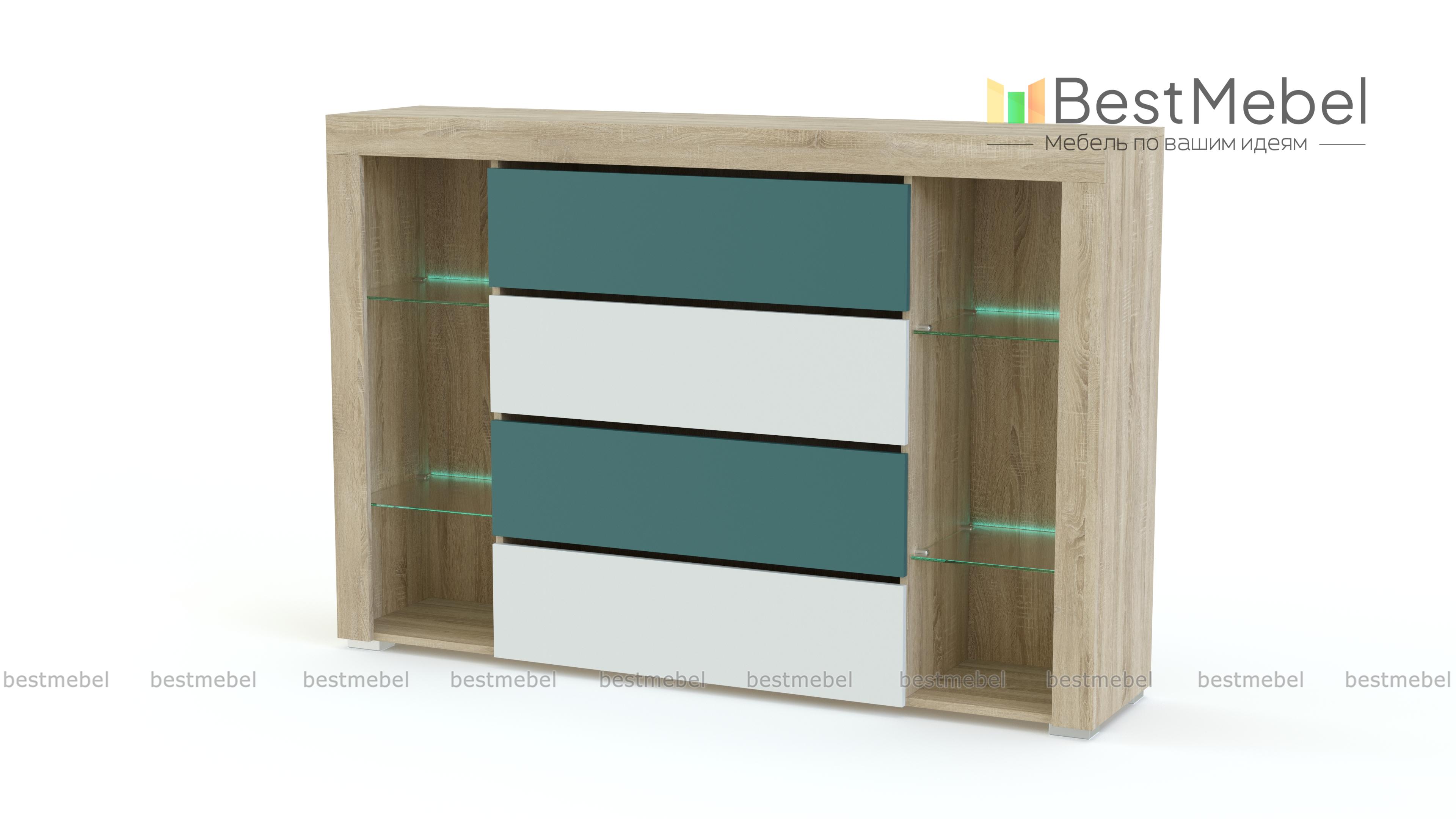 Комод Симпл 156 BMS дополнит интерьер современной гостиной ярким акцентом. Многофункциональная модель оборудована четырьмя выдвижными ящиками для домашнего текстиля и бытовых мелочей и открытыми стеклополками для книг, посуды, предметов декора. Стильной особенностью комода станут цветные матовые фасады и деликатная светодиодная подсветка полок. Купить комод Симпл 156 BMS и сделать зону отдыха уютной и комфортной вам всегда поможет наш интернет-магазин.