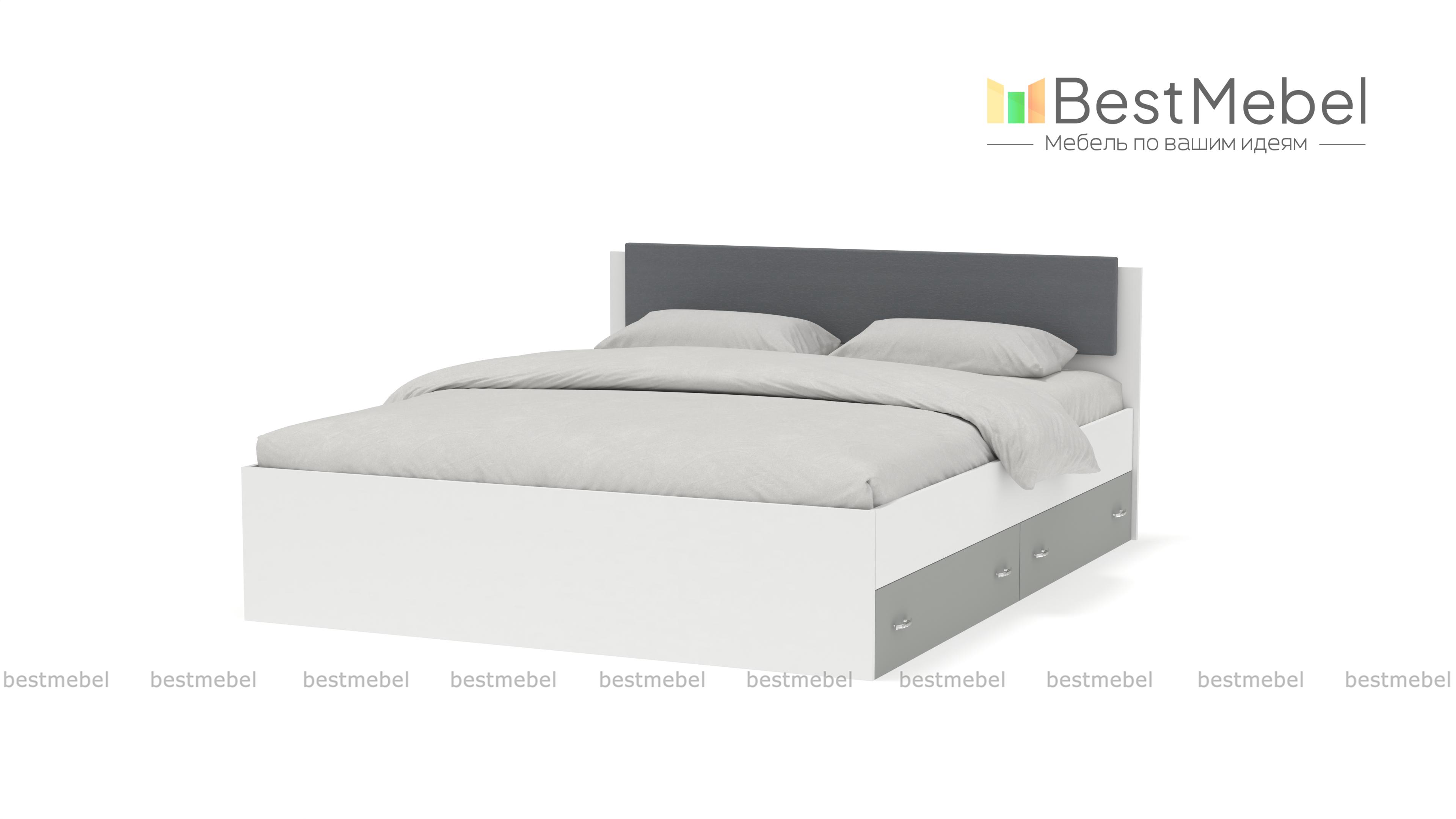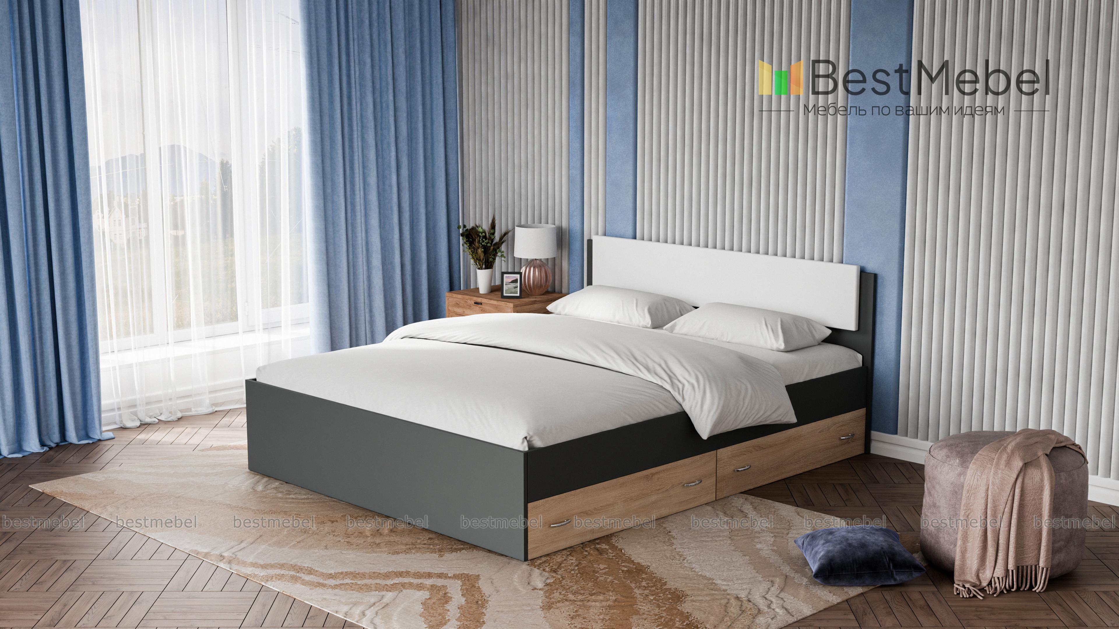Кровать двуспальная Виктория Эко BMS станет частью элегантного современного спального интерьера. Выполненная в актуальных монохромных оттенках, кровать отличается строгой геометрией форм. Модель оборудована просторным и высоким спальным местом без спинки в изножье, спинка изголовья дополнена накладкой в мягкой обивке из экокожи в универсальном белом оттенке. Для удобного хранения постельных принадлежностей предусмотрены просторные ящики в основании. Купить кровать двуспальную Виктория Эко BMS приглашаем в наш интернет-магазин.