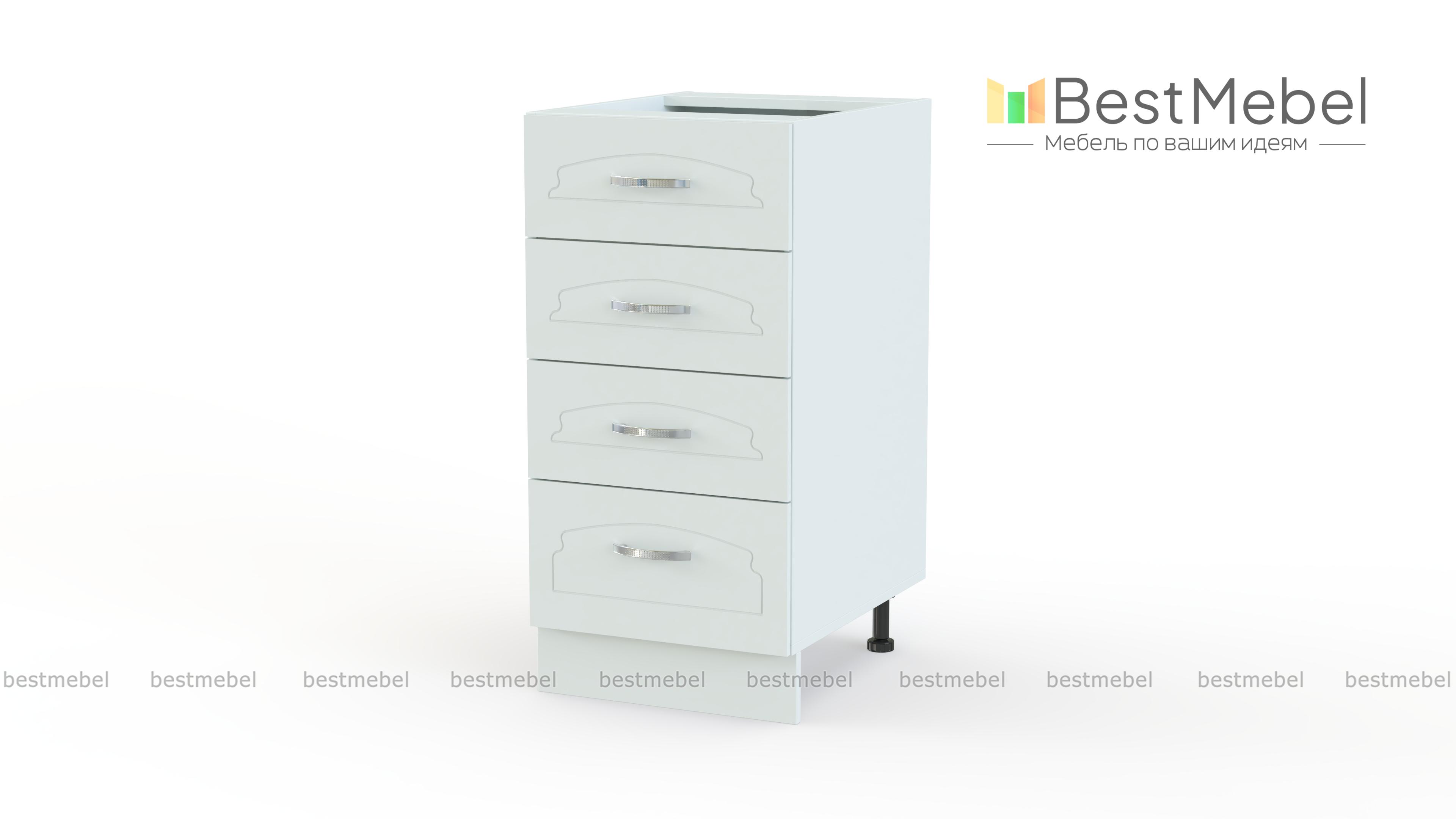 Шкаф нижний с 4-мя ящиками Настя BMS – это компактные размеры и продуманная конструкция из четырех выдвижных ящиков. Разные по высоте, они сделают особенно удобным хранение разнообразных кухонных мелочей, а малые габариты модели подойдут небольшим помещениям. Тумба на регулируемых пластиковых опорах, закрытых цоколем, может использоваться как в комплекте, так и самостоятельно. Купить шкаф нижний с 4-мя ящиками Настя BMS, подобрав нужные параметры, вы сможете в нашем интернет-магазине по приятной цене.