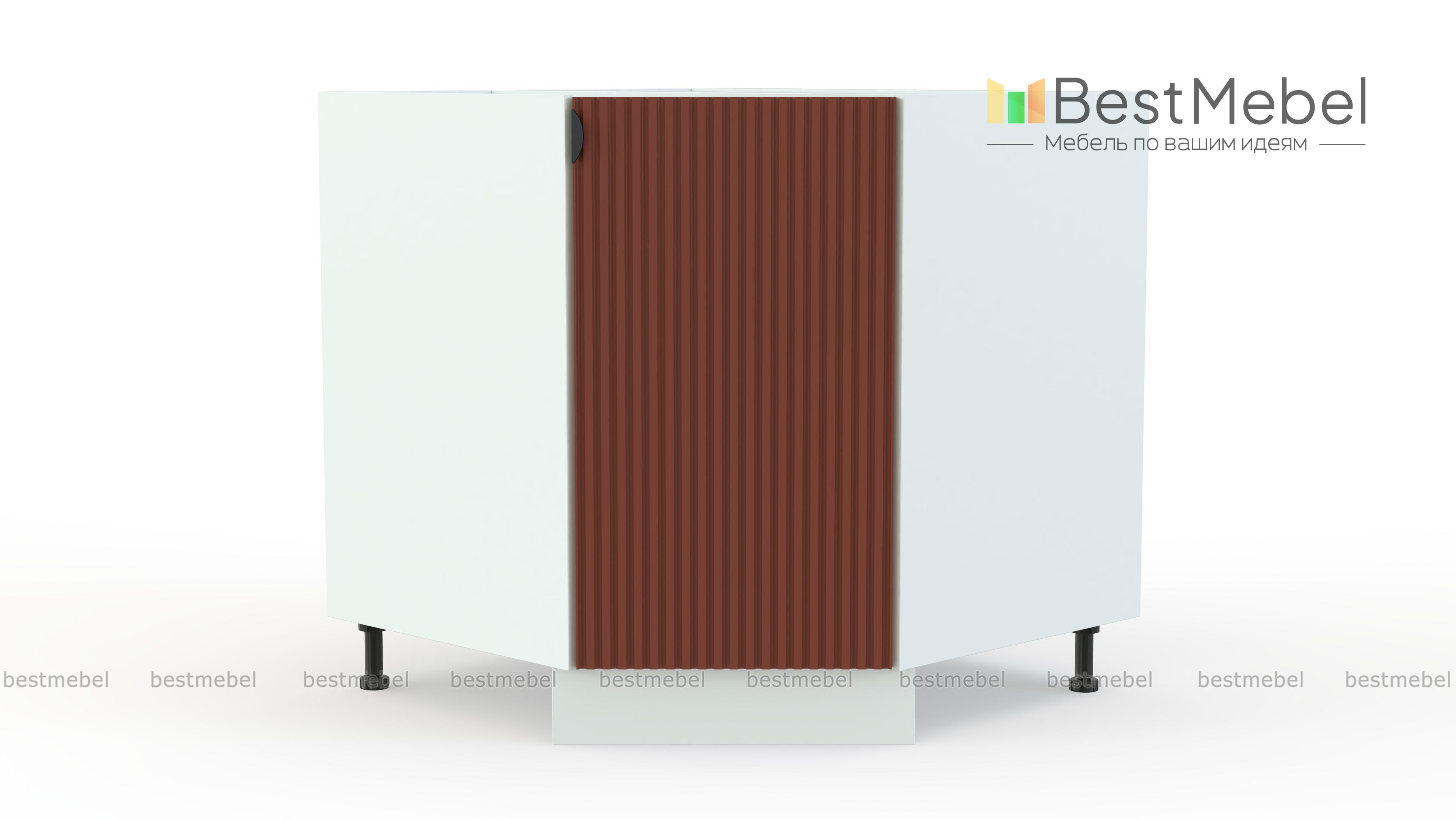 Шкаф нижний угловой (трапеция) Альберт BMS задействует угловую часть кухни и служит для стыковки модулей. Распашная дверца имеет декоративную рифленую отделку и миниатюрную торцевую ручку в контрастном цвете. Внутри шкаф оборудован полкой, что позволяет эффективно использовать пространство для хранения посуды и продуктов. Купить шкаф нижний угловой (трапеция) Альберт BMS с изготовлением по индивидуальным размерам вы сможете на сайте нашего интернет-магазина.