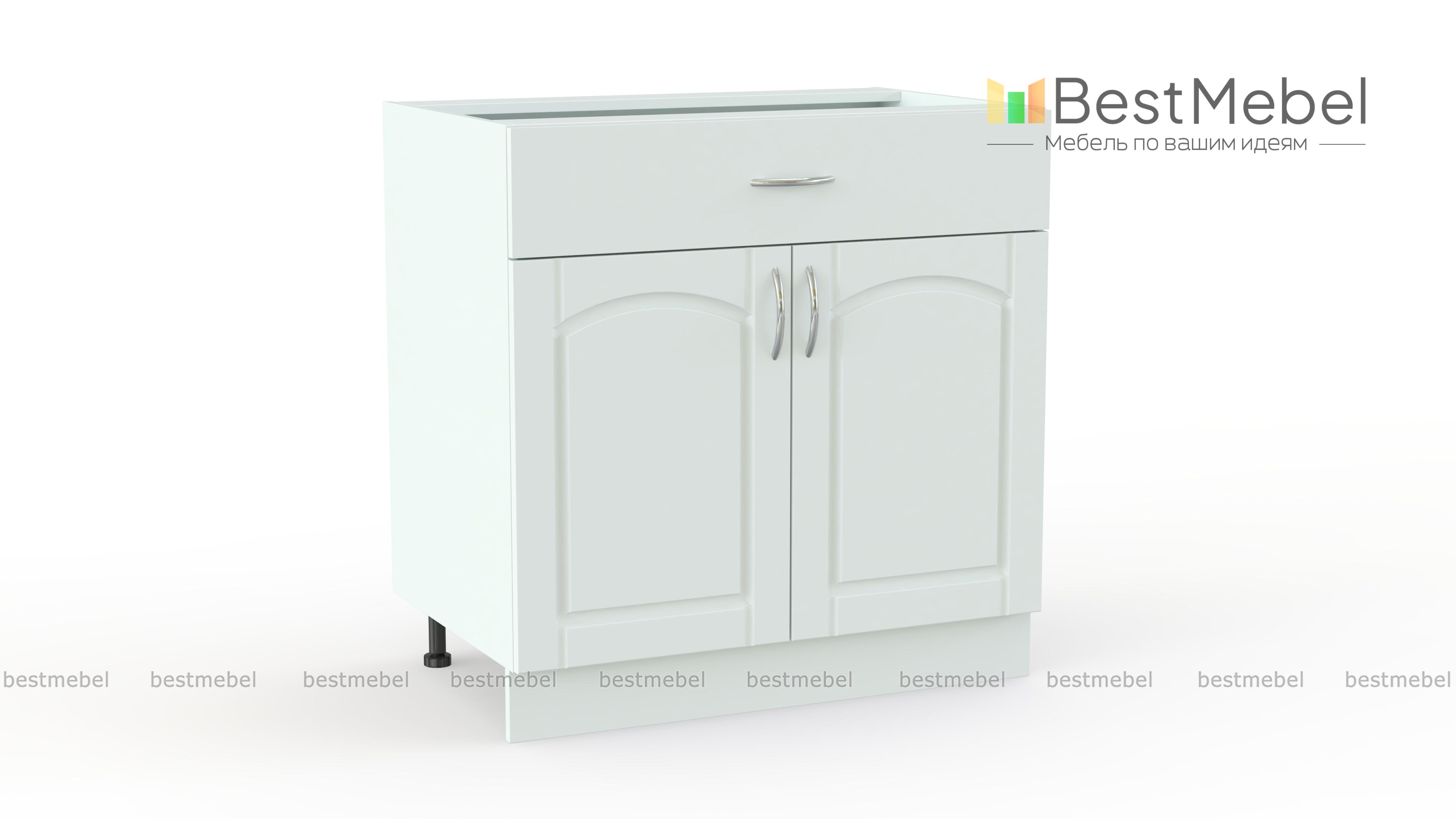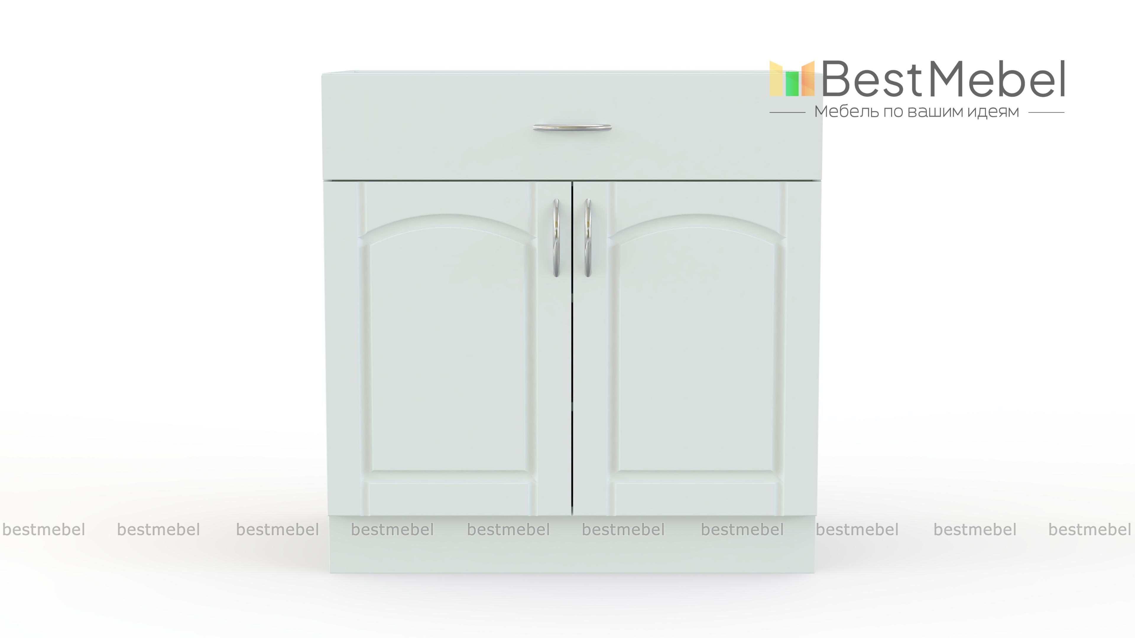 Стол с ящиком Трапеза BMS дополнит нижний ряд модулей кухонного гарнитура в классическом стиле. Тумба отличается практичной комбинированной конструкцией и оборудована широким выдвижным ящиком, удобным для хранения столовых приборов и прочих мелких вещей, и распашным отделением с полкой для габаритных предметов и продуктов. Изящные фасады выполнены в модном пастельном оттенке и украшены ручками-скобами под серебро. Купить стол с ящиком Трапеза BMS для эстетичного и комфортного интерьера приглашаем в наш интернет-магазин.