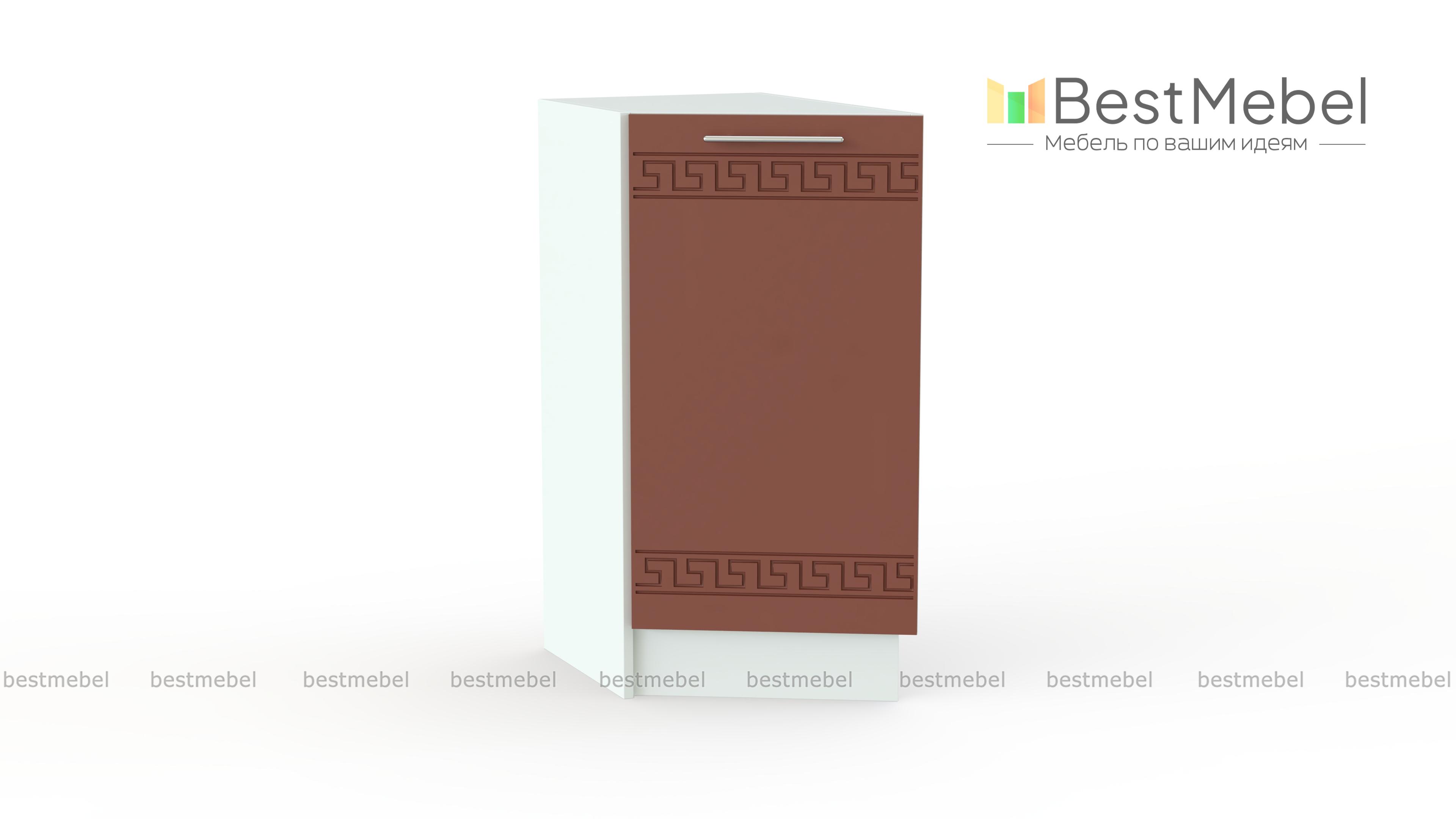 Тумба торцевая Греция BMS предназначена для завершения напольного ряда модулей кухонного комплекта. Тумба позволит сгладить углы и сделает интерьер визуально более легким. Не только эстетичная, но и функциональная, модель оборудована одним распашным отделением с полкой, которое оптимально подходит для хранения мелочей – баночек со специями, небольших кухонных аксессуаров. Фасад в общем для серии стиле украшен неброским орнаментом. Купить тумбу торцевую Греция BMS для стильного дополнения гарнитура вам поможет наш интернет-магазин.