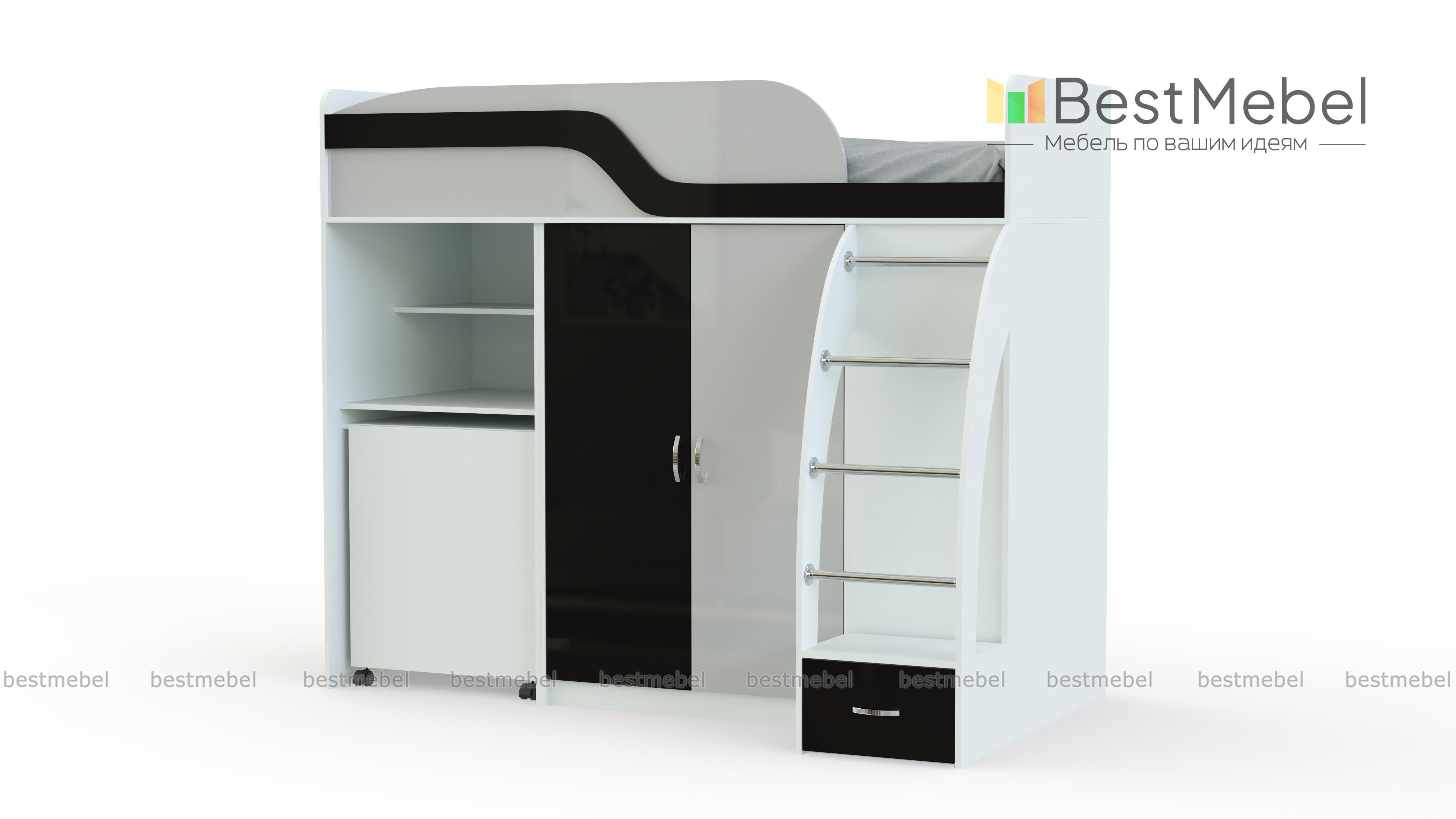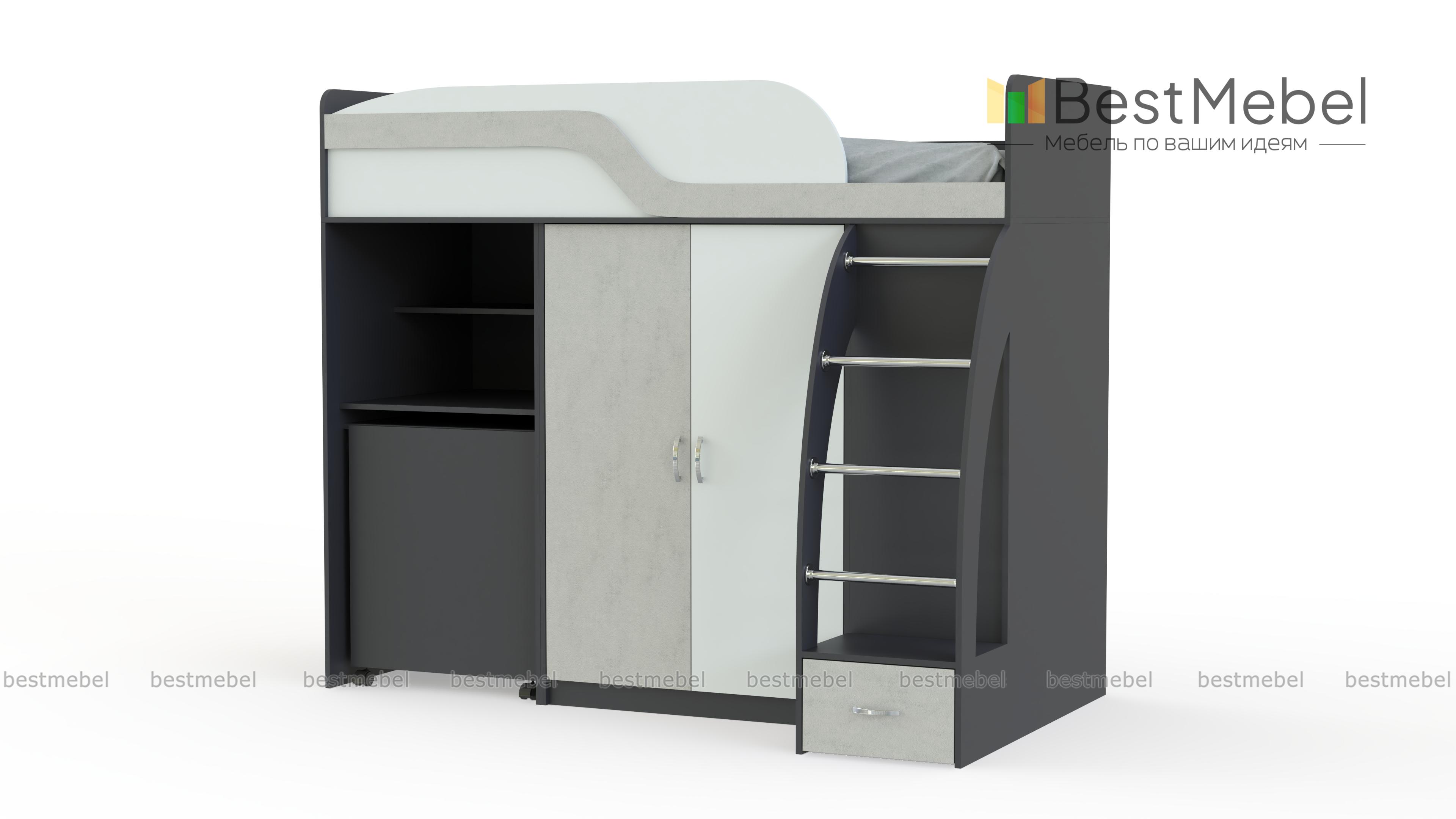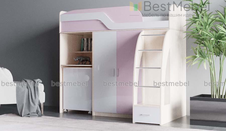 Кровать-чердак с рабочей зоной Мираж К22 BMS оборудована всем необходимым ребенку для полноценного сна, учебы и творческих занятий. Композиция занимает совсем немного места, объединяя спальное место с защитным бортиком и лестницей, распашной шкафчик для одежды и секцию с выкатным письменным столом и нишами. Безопасность ребенку обеспечат скругленные углы предметов. Купить кровать-чердак с рабочей зоной Мираж К22 BMS вы сможете в нашем интернет-магазине, подобрав оптимальное цветовое решение.