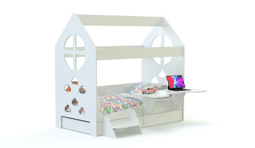 Кровать-домик Лимпо 12.14 BMS сочетает в себе яркий дизайн и высокую функциональность. Выполненная в универсальном белом цвете, модель оборудована просторным спальным местом со ступенькой, компьютерным столиком эргономичной формы и выкатными ящиками для постельного белья или игрушек в основании. Боковины кровати с круглыми «окошками» декорированы фигурными вырезами. Купить кровать-домик Лимпо 12.14 BMS и сэкономить пространство детской для игр вам поможет наш интернет-магазин.