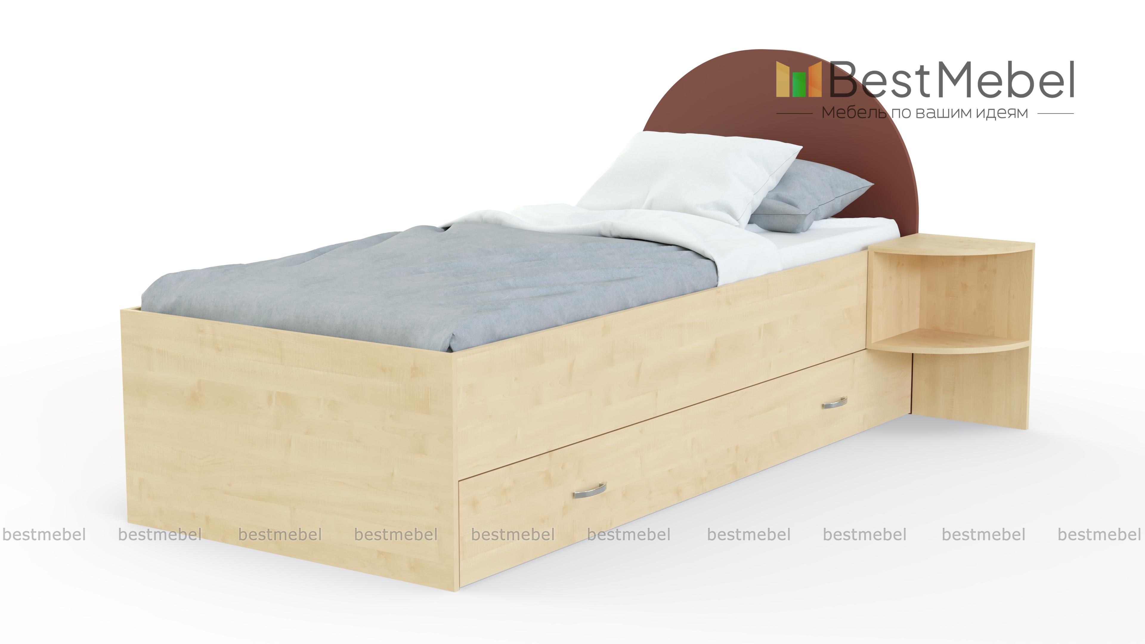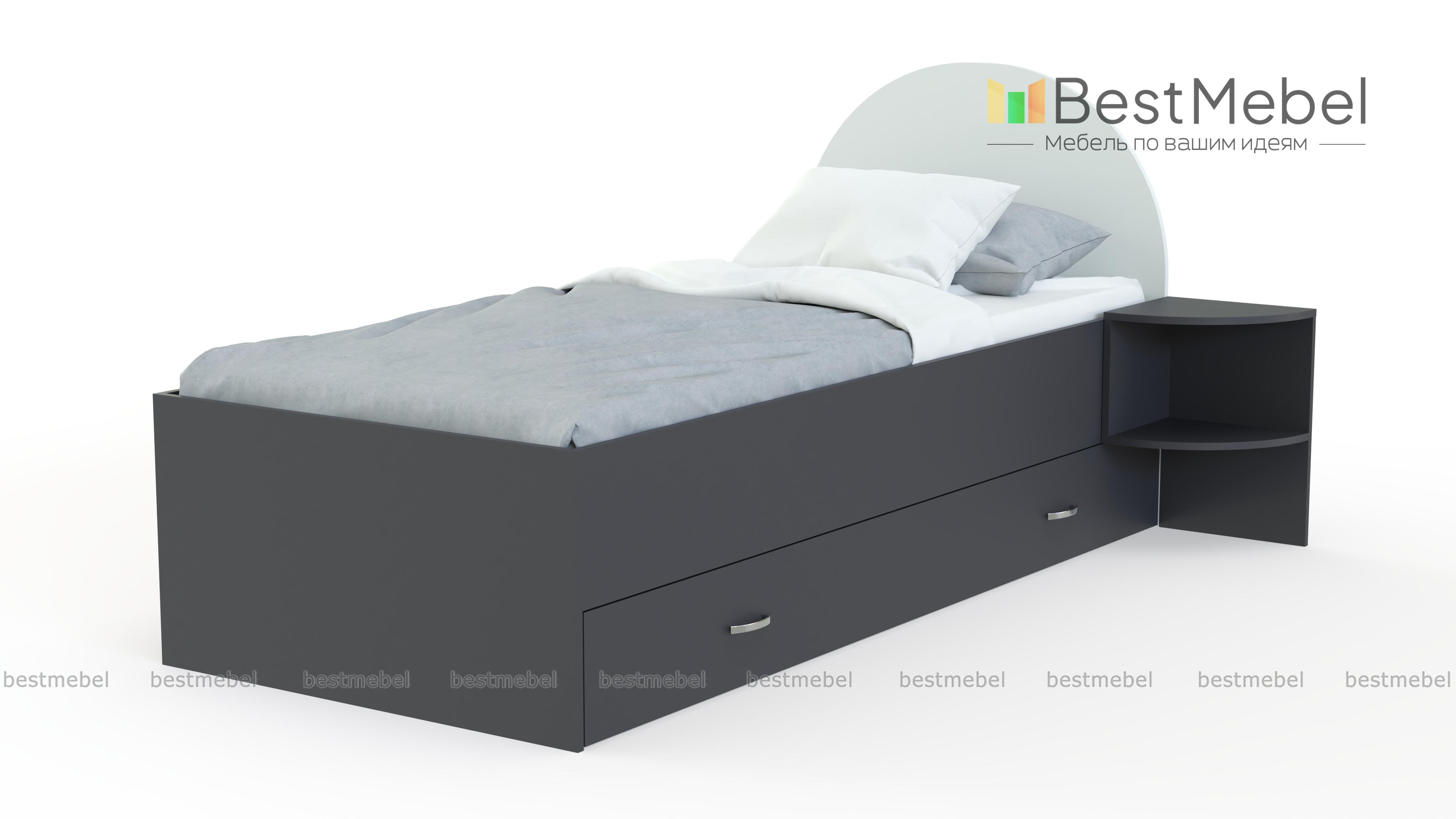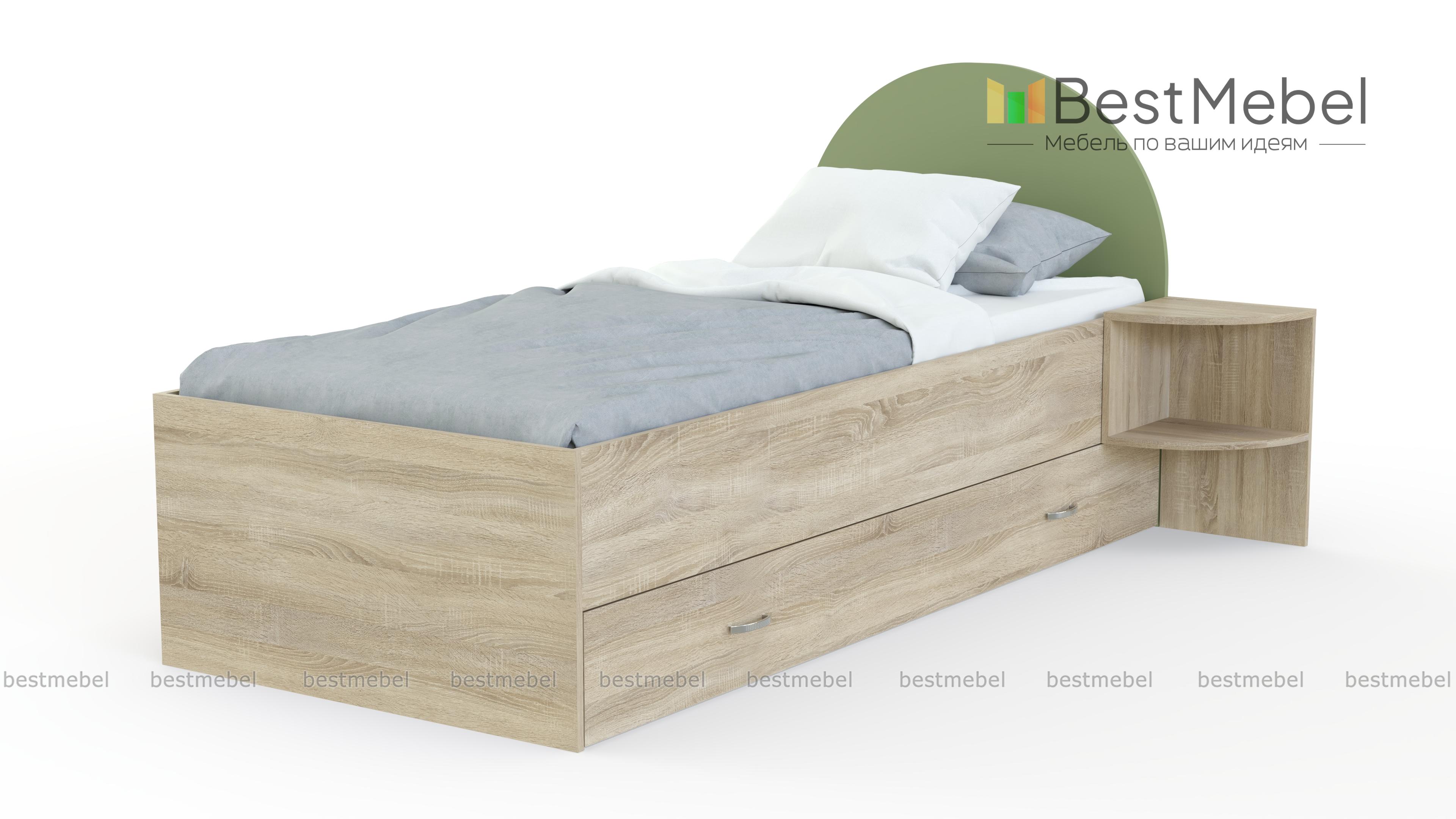 Кровать Princess BMS поможет обустроить уютную комнату для девочек. Современная модель с просторным спальным местом без спинки в изножье оборудована скругленным изголовьем и выполнена в сочетании светлых тонов и аквамаринового. Разместить под рукой необходимые мелочи поможет приставная тумба из пары открытых полок, а для постельного белья предусмотрен широкий ящик в основании. Купить кровать Princess BMS для изящного сказочного интерьера приглашаем в наш интернет-магазин.