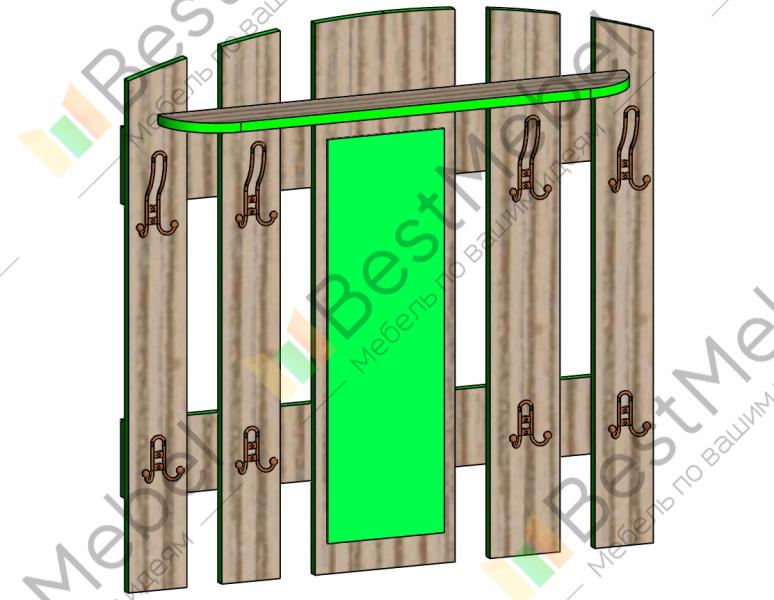 Вешалка Винсент 4 BMS с элегантно скругленным верхом выполнена из отдельных вертикальных планок. Незаменимое в интерьере комфортной прихожей зеркало дополнено расположенными на двух уровнях крючками для одежды и аксессуаров и верхней полочкой под головные уборы. Изготовленная из качественной ламинированной плиты, вешалка проста в уходе, долговечна и доступна по цене. Купить вешалку Винсент 4 BMS с выбором цветового решения приглашаем в наш интернет-магазин.