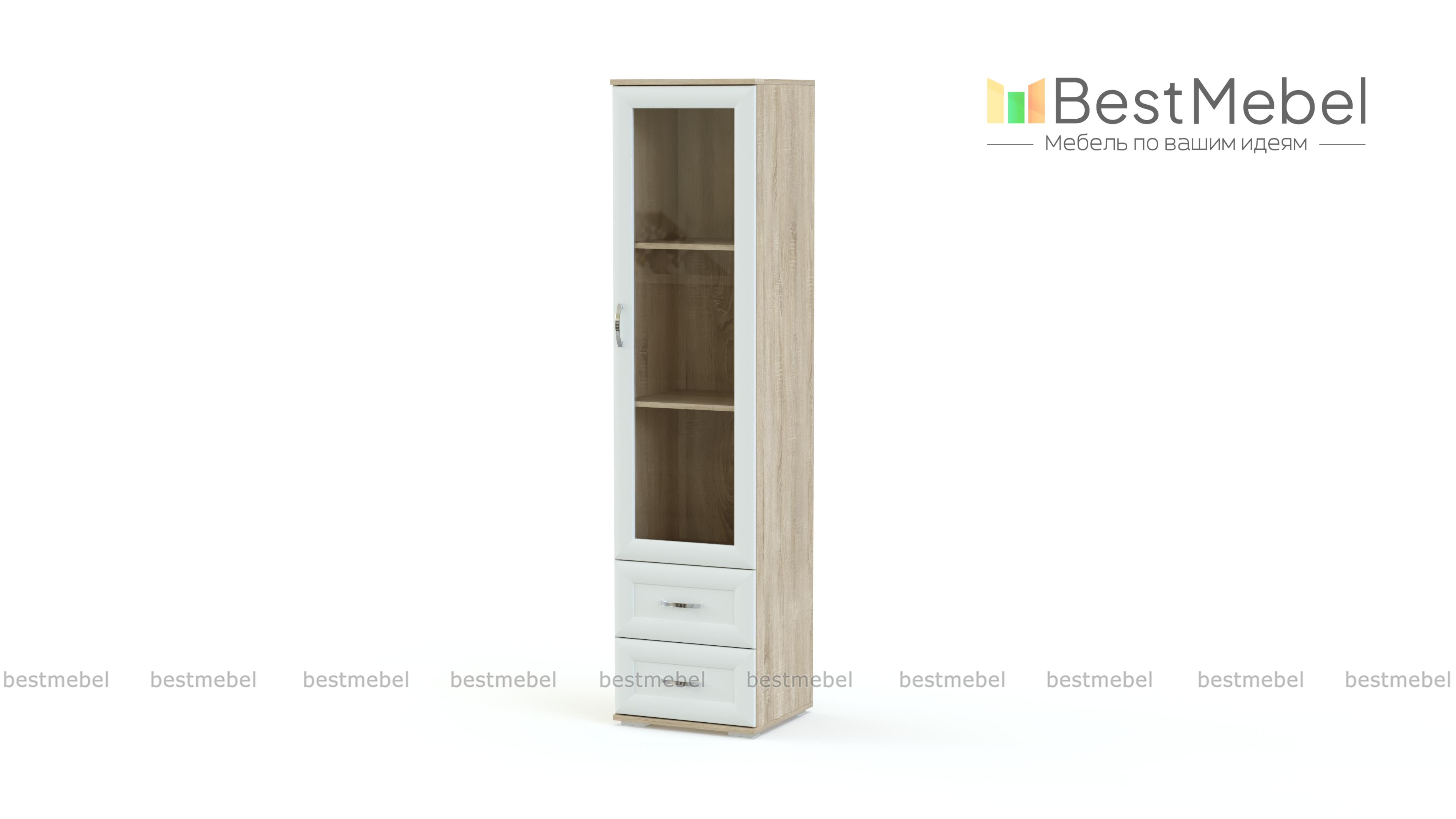 Шкаф для книг Диоскура 6 BMS отличается классическим дизайном и функциональностью. Благодаря наличию разного типа отделений аккуратно разместятся не только книги, но и мелкие вещи. Компактный шкаф оборудован застекленным распашным отделением и двумя выдвижными ящиками в основании. Рамочные фасады в сочетании с древесными оттенками смотрятся особенно элегантно. Купить шкаф для книг Диоскура 6 BMS, подобрав наиболее подходящую расцветку, вы сможете недорого в нашем интернет-магазине.