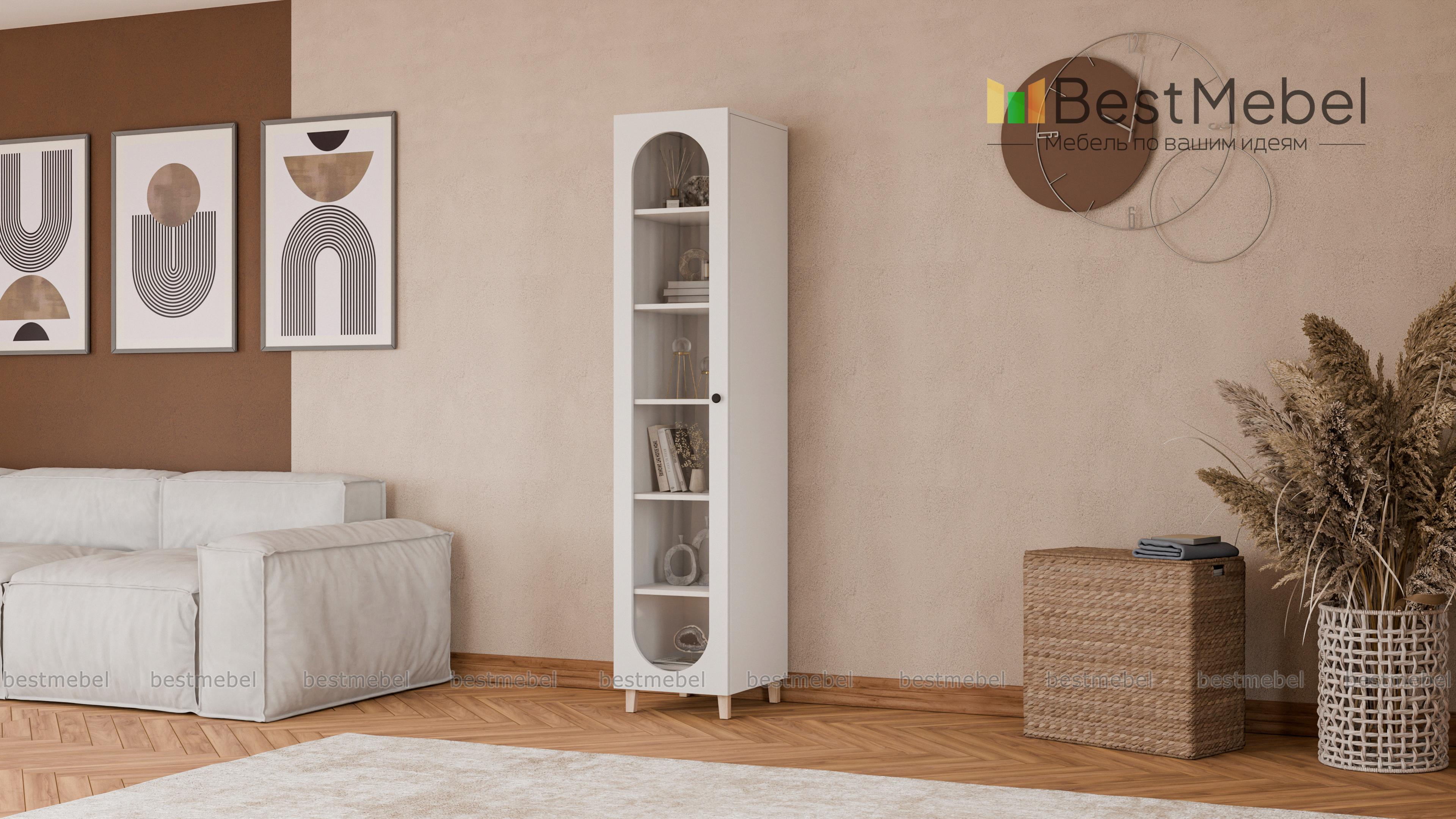 Шкаф-пенал Рене 2 BMS представляет собой стильную витрину с распашной дверцей. За стеклом с большим овальным вырезом располагаются пять полок для книг, учебных пособий, посуды, предметов коллекции и еще многого другого. Актуальная палитра оттенков позволяет вписать этот компактный пенал с высокими ножками практически в любой современный интерьер. Купить шкаф-пенал Рене 2 BMS вы сможете в нашем интернет-магазине с выбором размеров, цвета и фурнитуры.
