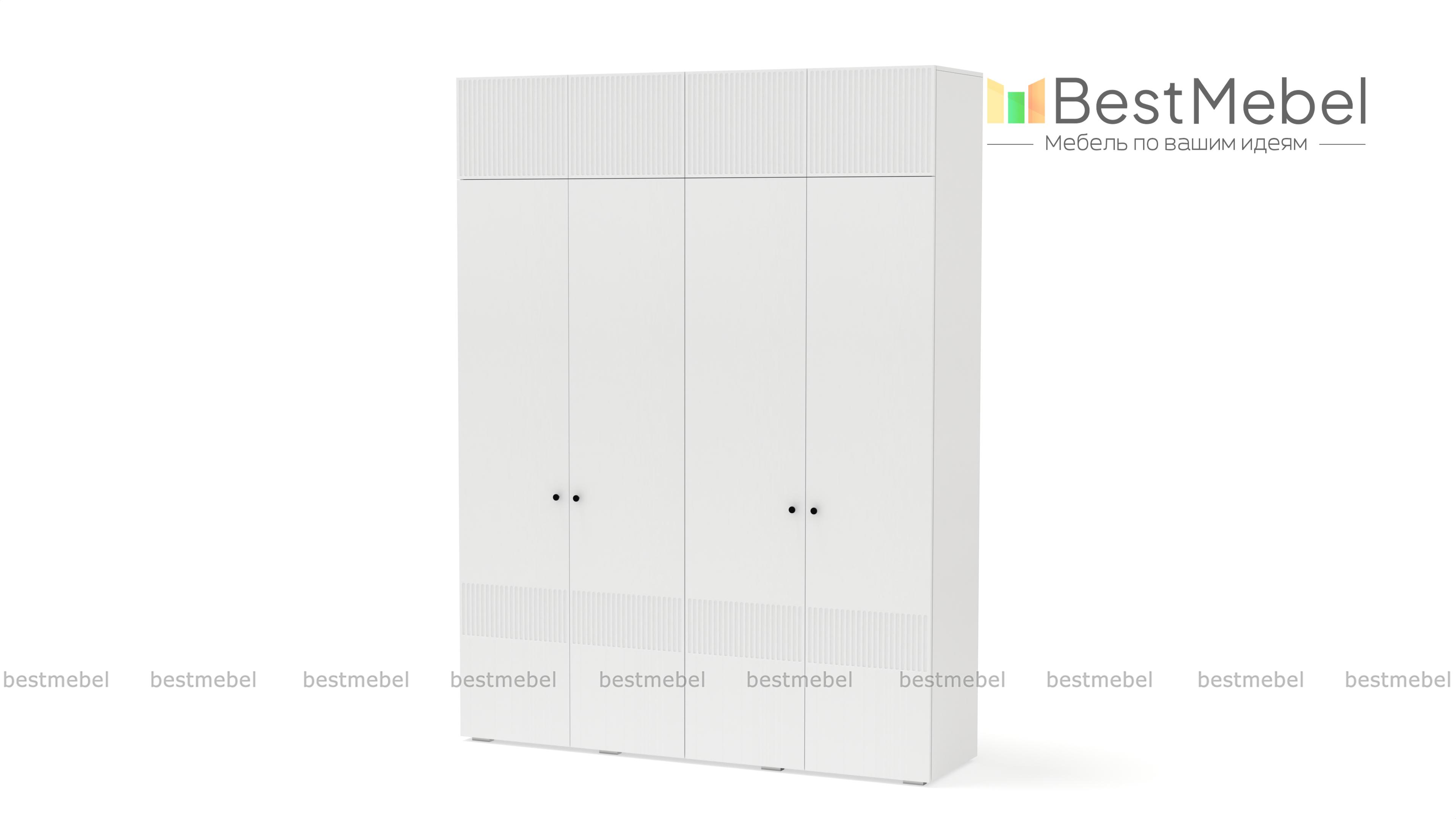 Шкаф распашной Джосс 10 BMS с четырьмя дверцами и антресолью можно разместить в разных комнатах: небольших спальнях, прихожих и детских. Оригинальные оттенки корпуса и фасада создают комфортную атмосферу в помещении, стильный акцент в отделке — фрезерованный орнамент. За дверцами справа скрыты штанга и полка, а слева — узкая платяная секция и бельевой стеллаж. Купить шкаф распашной Джосс 10 BMS с выбором размеров, цвета и фурнитуры вы сможете недорого в нашем интернет-магазине.