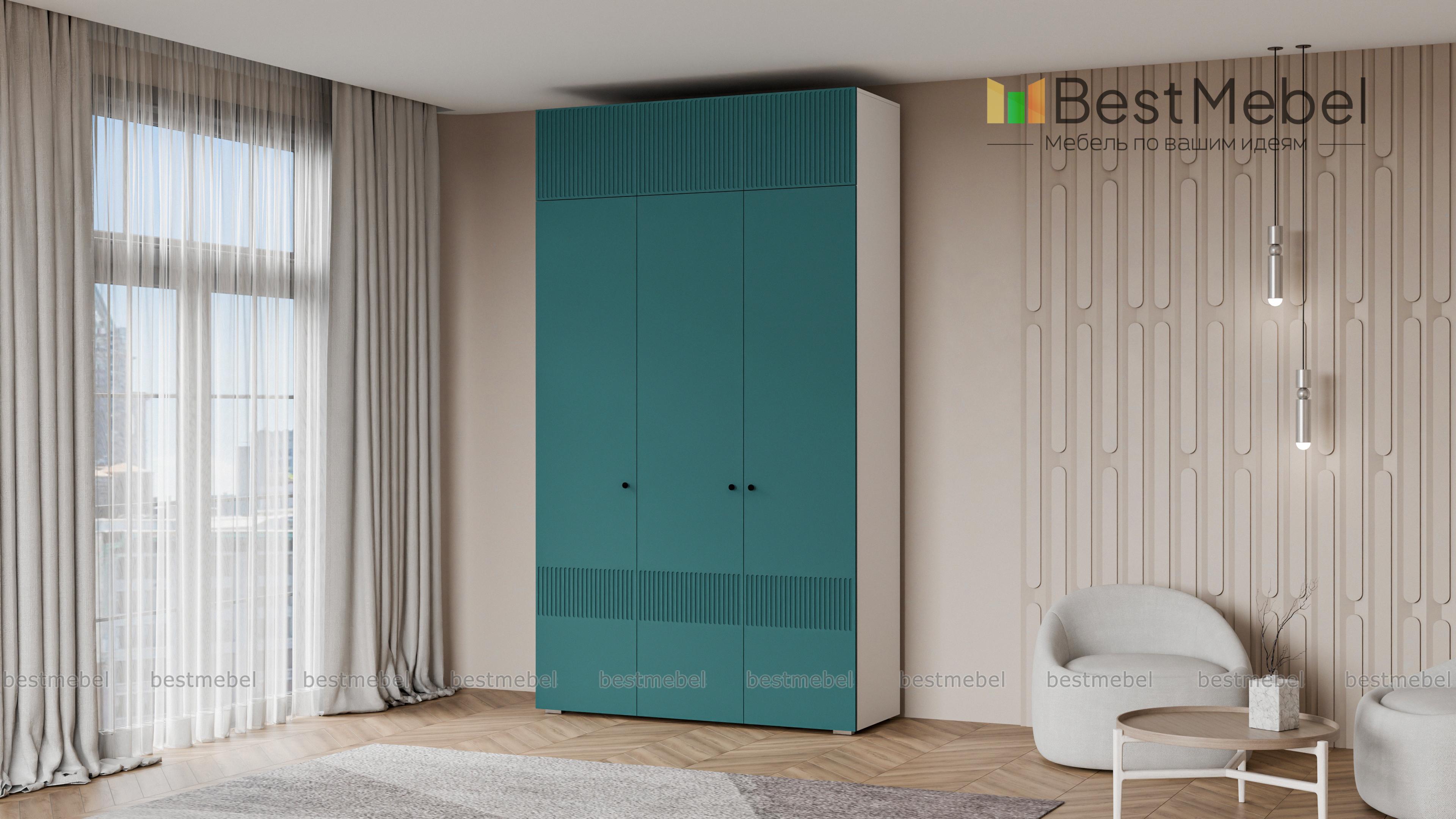 Шкаф распашной Джосс 9 BMS с фрезерованным декором на фасаде аквамаринового оттенка подходит для разных интерьеров: прихожих, спален и детских. Трехдверный шкаф оборудован платяной штангой, полками и антресолью для эффективного использования пространства. Распашные дверцы с миниатюрными круглыми ручками обеспечивают легкий доступ к основным отделениям и верхним полкам. Купить шкаф распашной Джосс 9 BMS вы сможете в нашем интернет-магазине в любых размерах и оттенках из каталога.