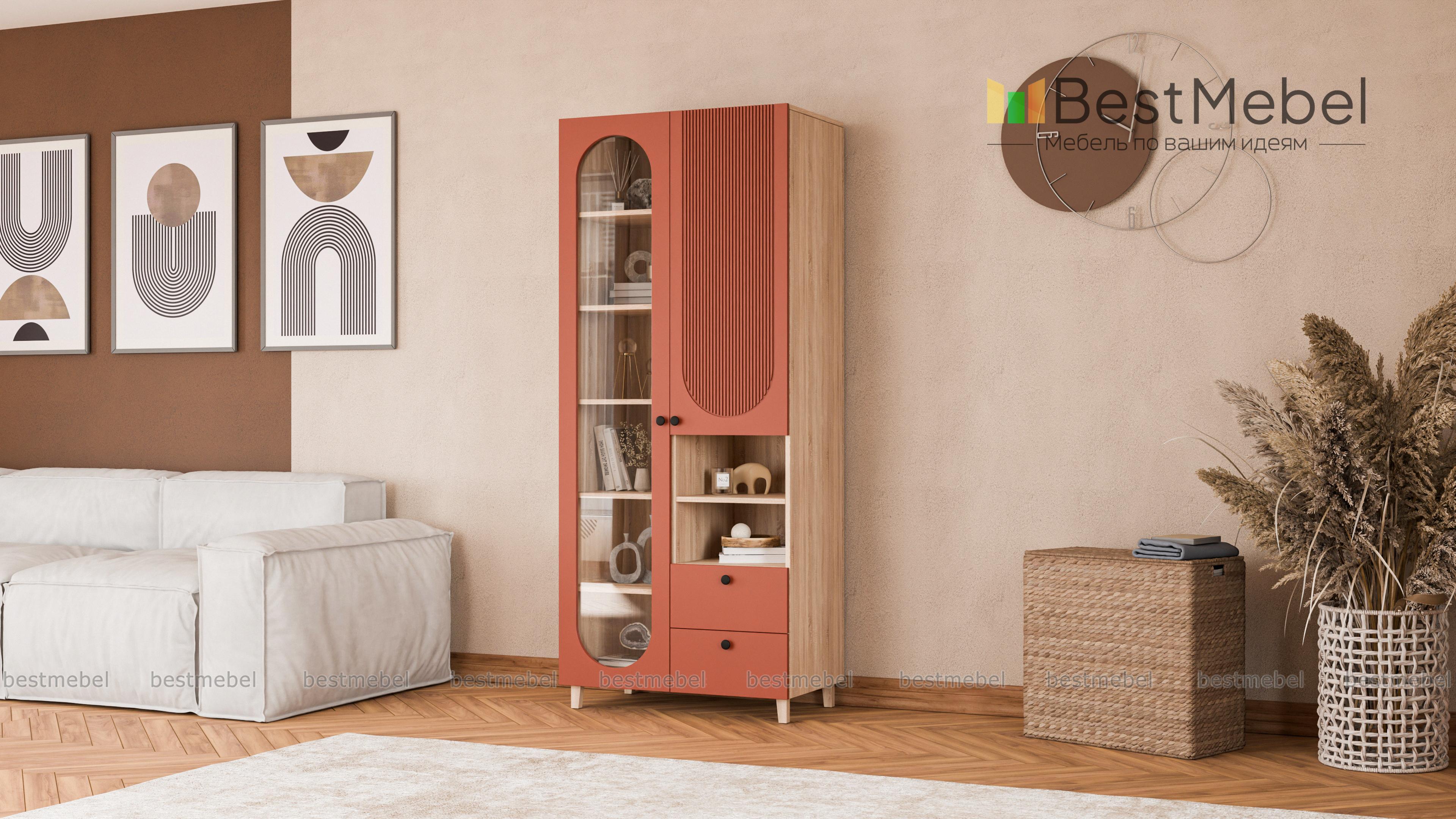 Шкаф распашной Рене 6 BMS с фактурным фасадом органично вписывается в пространство современной квартиры. Лаконичный силуэт с высокими ножками сочетается с оригинальным геометричным декором. Овальный вырез витрины слева дополняет закрытое отделение справа, секция с полкой для открытого хранения и два вместительных выдвижных ящика под мелкие вещи. Купить шкаф распашной Рене 6 BMS вы сможете в нашем интернет-магазине, подобрав размеры, цвет и фурнитуру.