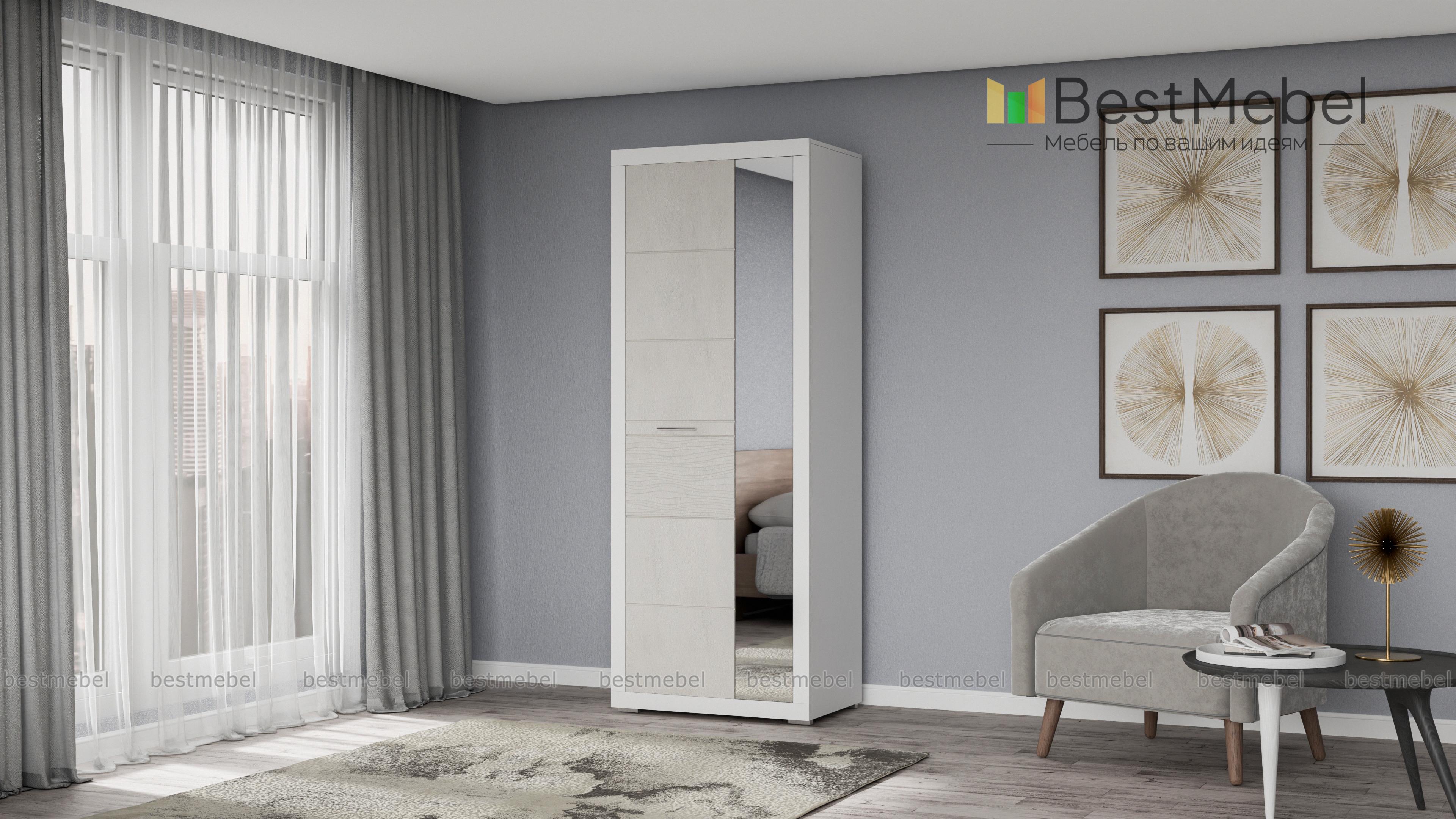 Шкаф Вирбий 1 BMS – изящная модель минималистичного дизайна для эффектного и функционального интерьера прихожей. Отличительная особенность шкафа – белоснежные глянцевые фасады с рифленой вставкой, узкая дверца – зеркальная. Внутреннее наполнение – пять вместительных полок для одежды или обуви. Светлый и легкий, шкаф сделает малогабаритное помещение визуально просторнее. Купить Шкаф Вирбий 1 BMS по доступной цене вы сможете в нашем интернет-магазине.