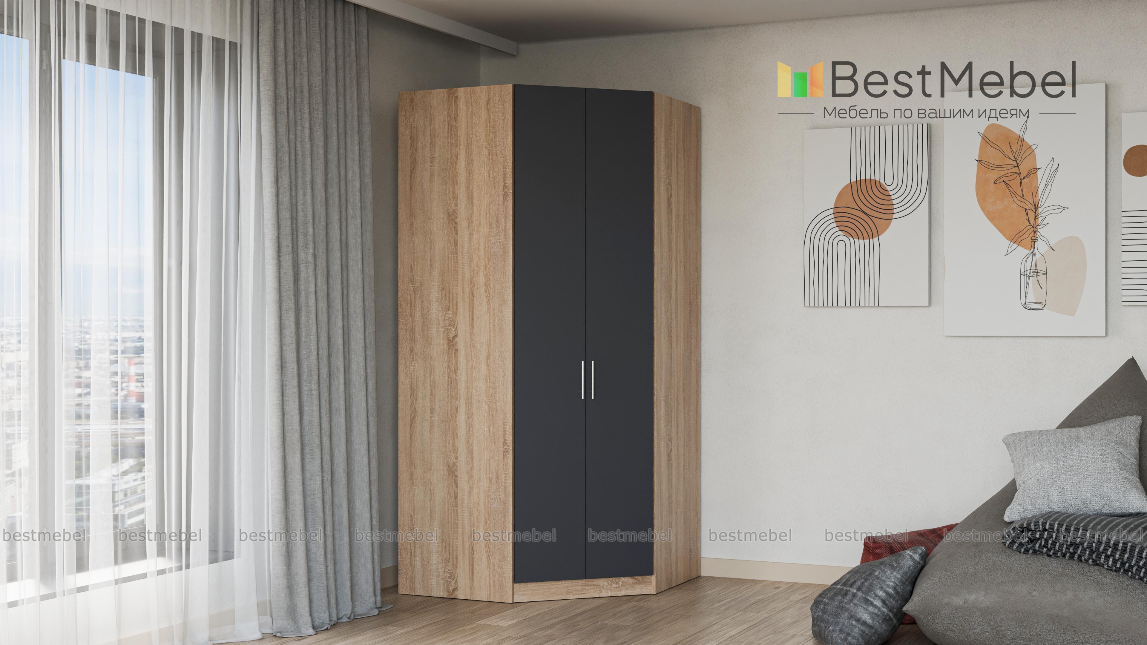 Шкаф угловой Маугли BMS не требует много места и отлично вписывается в интерьер детской. В отделке использованы ламинированная ДСП спокойных древесных и темных оттенков и оригинальная фурнитура, создавая гармоничный современный дизайн. Несмотря на внешнюю компактность, в этот шкаф поместится все необходимое, а за счет распашной конструкции вещи хорошо просматриваются. Купить шкаф угловой Маугли BMS с выбором цвета и размеров вы сможете в нашем интернет-магазине.
