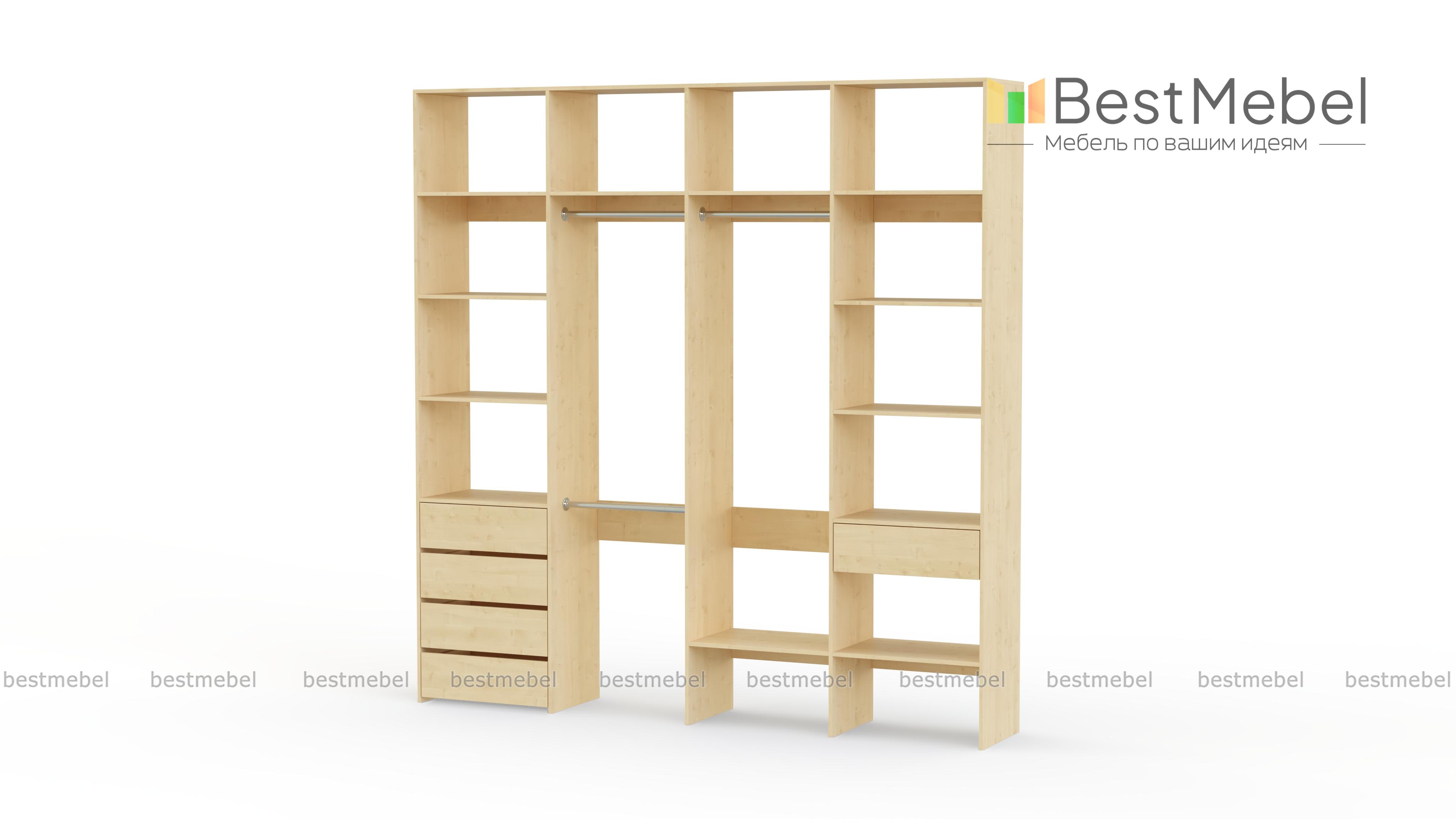 Стеллаж для одежды Мирта 18 BMS поможет вам создать полноценную гардеробную, где у каждой вещи есть свое место. Продуманная компоновка позволяет развесить одежду по типам и сезонности, разместить обувные коробки и убрать мелочи. Три штанги, полки и выдвижные ящики находятся на удобной для ежедневного пользования высоте, учитывая требования эргономики. Купить стеллаж для одежды Мирта 18 BMS вы сможете в нашем интернет-магазине, самостоятельно подобрав цвет и размеры.