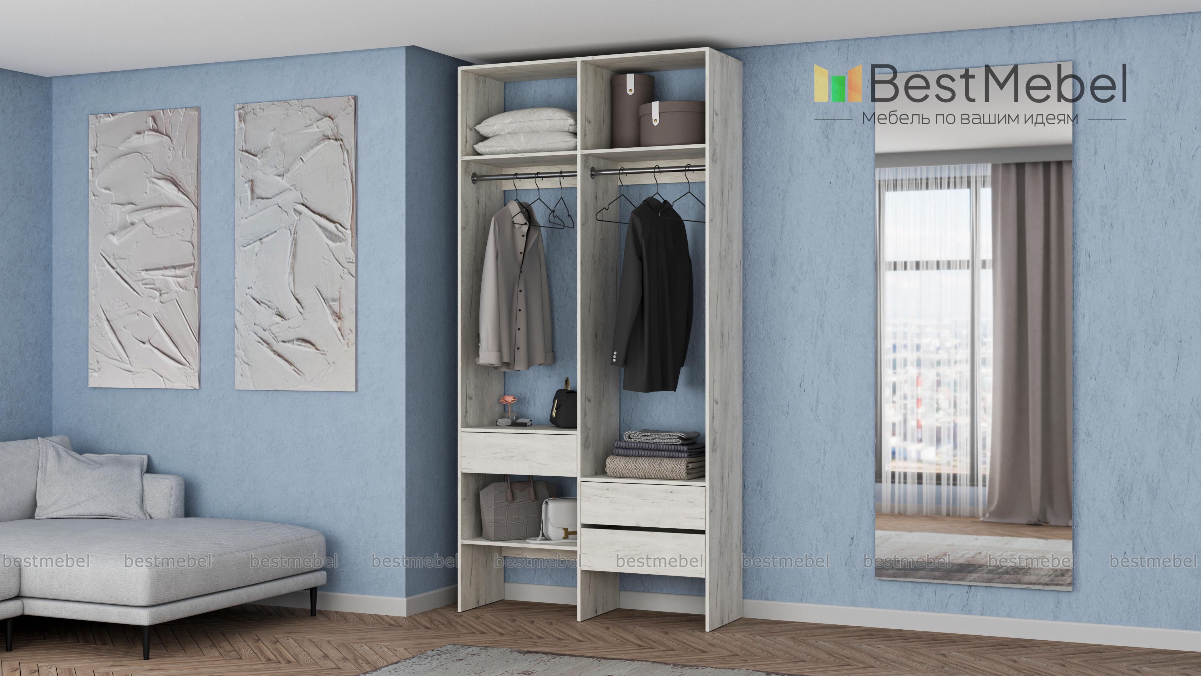 Стеллаж для одежды Мирта 43 BMS будет уместен в прихожей, гардеробной комнате, небольшой спальне. Открытый и негромоздкий стеллаж в светлом оттенке — отличная альтернатива шкафу. Конструкция из двух отделений со штангами, полок и трех выдвижных ящиков, расположенных на разной высоте, обеспечивает порядок и удобство доступа к вещам. Купить стеллаж для одежды Мирта 43 BMS в подходящем именно вам размере и цвете можно недорого на сайте нашего интернет-магазина.