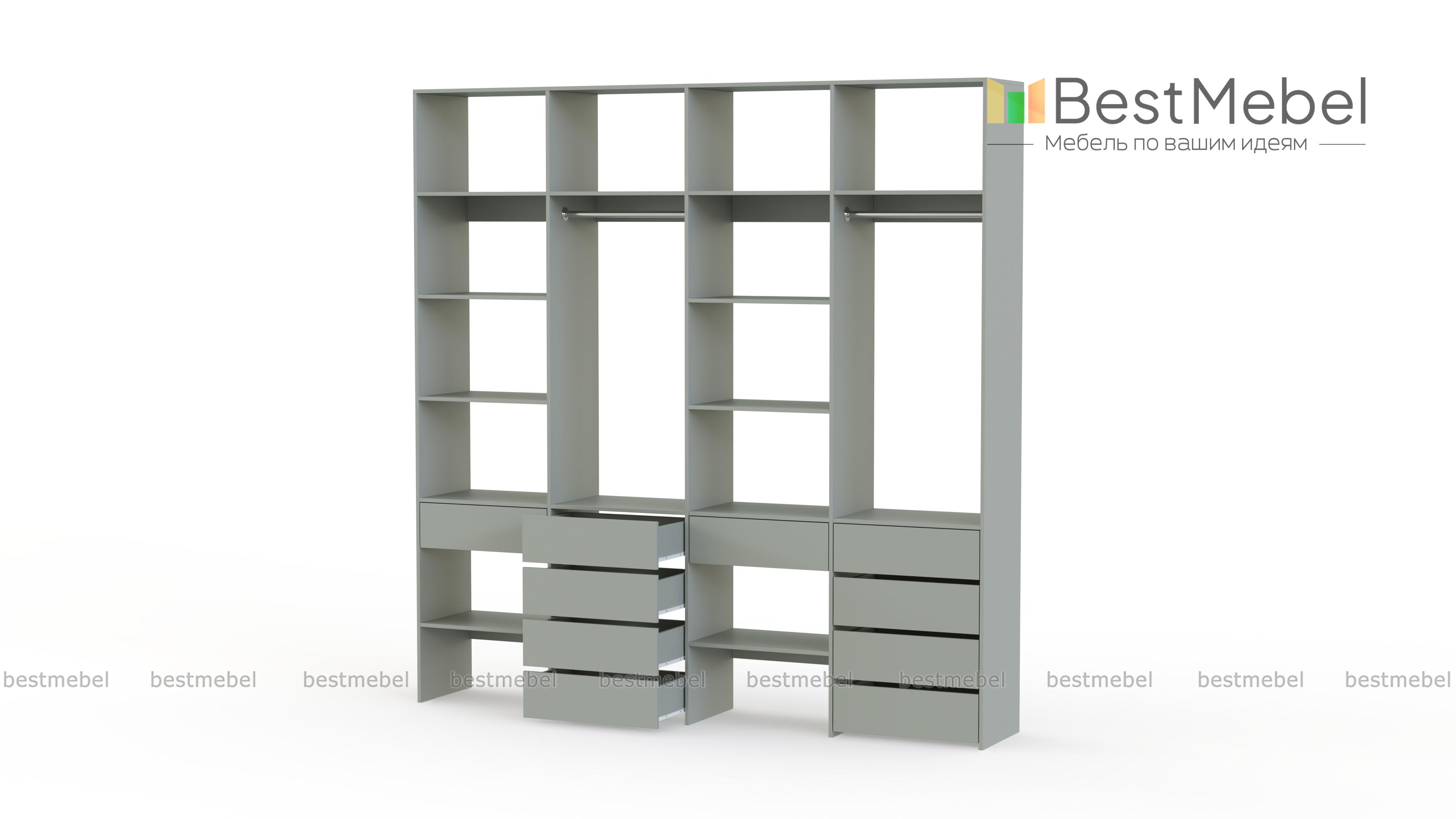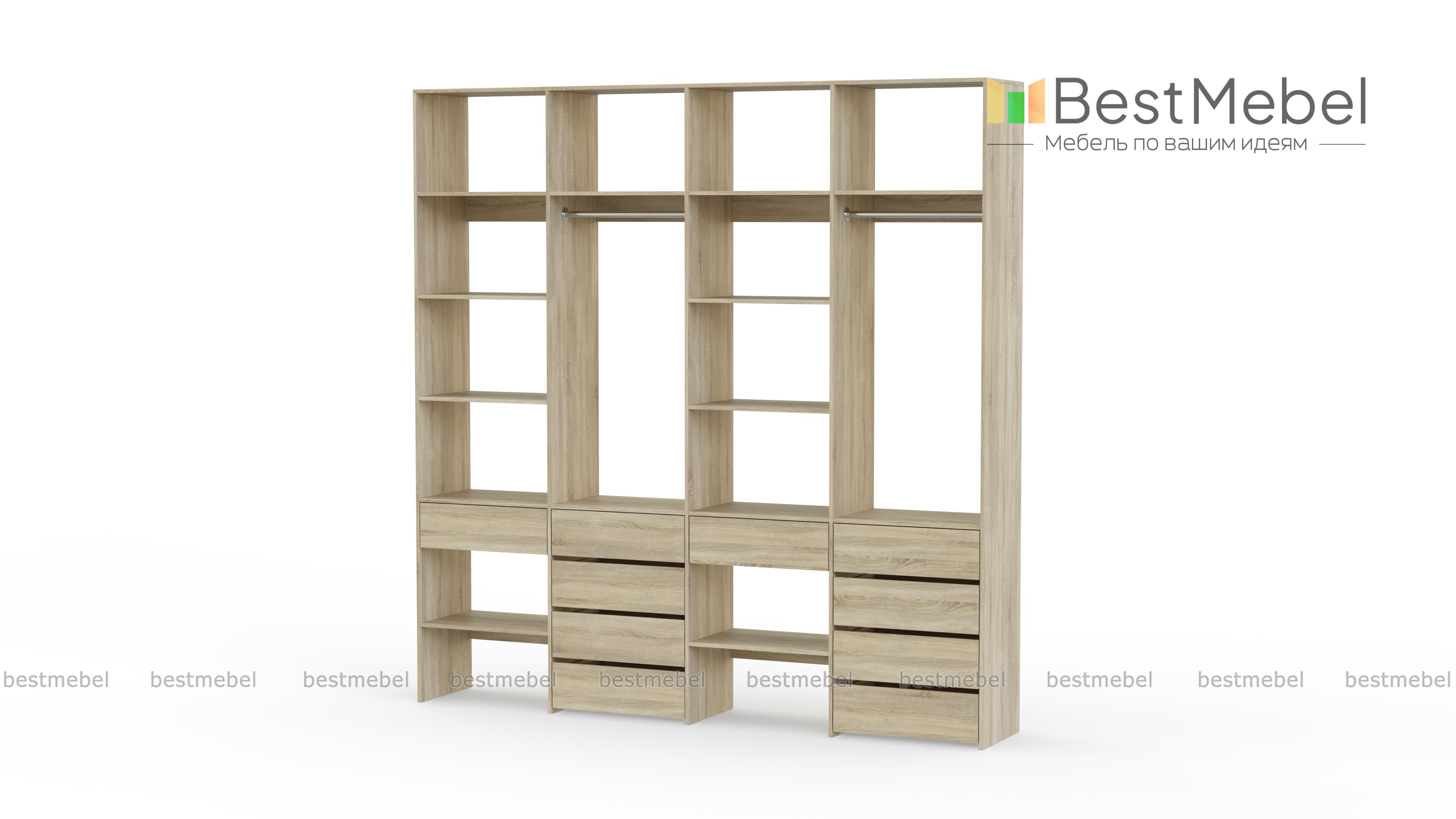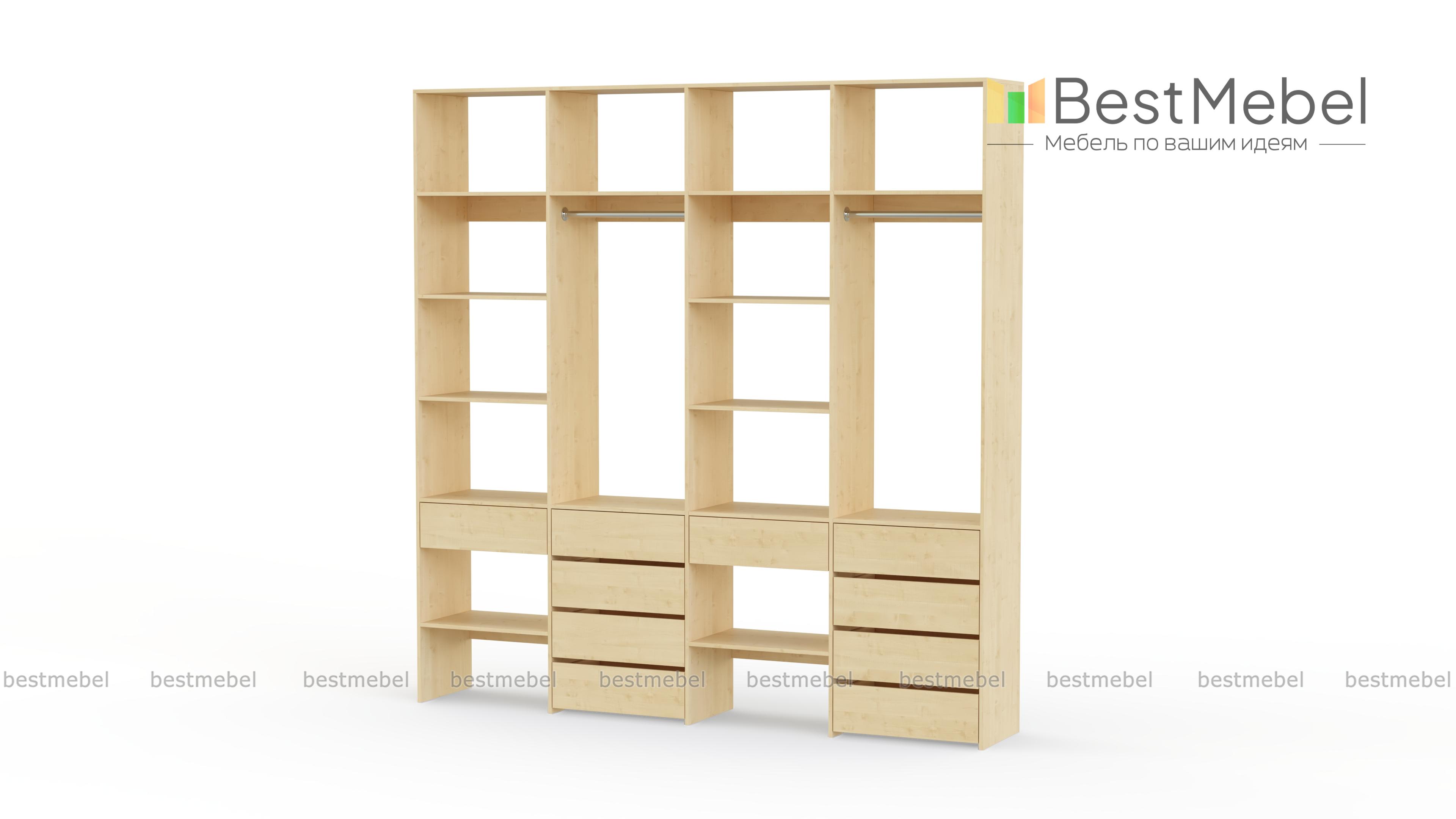 Стеллаж для одежды Мирта 61 BMS обеспечит удобное хранение вашим вещам, помогая поддерживать порядок в доме. В конструкции вместительного четырехсекционного стеллажа чередуются открытые полки и штанги, а выдвижные ящики выполняют функцию комода. За ламинированными поверхностями легко ухаживать и стеллаж надолго сохранит свой эстетичный вид. Купить стеллаж для одежды Мирта 61 BMS в необходимом размере и подходящем вашему интерьеру оттенке вы сможете в нашем интернет-магазине.