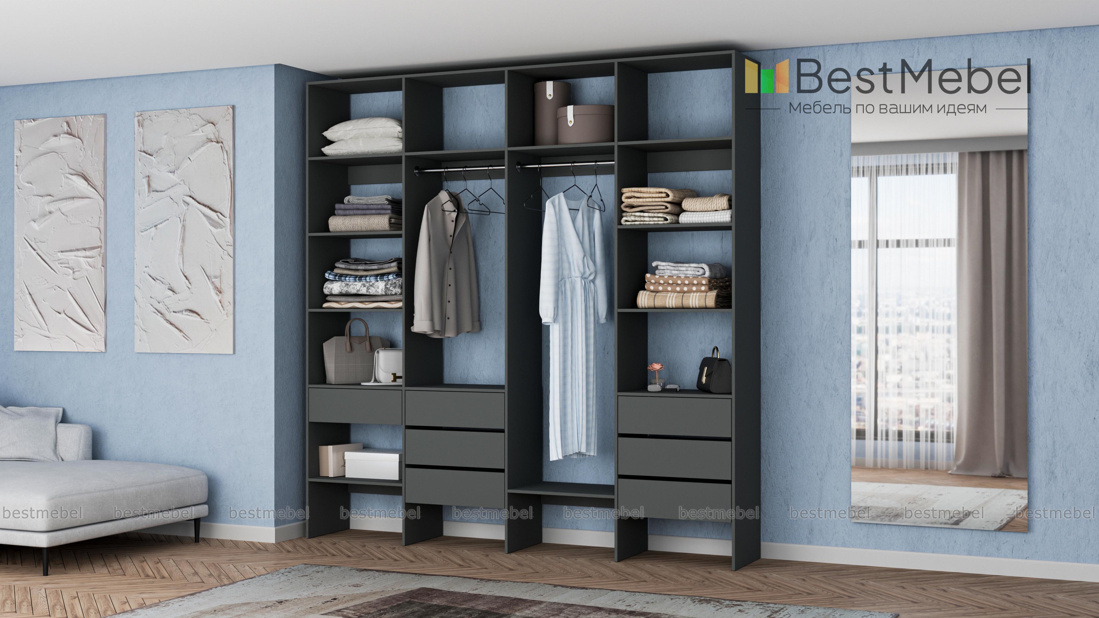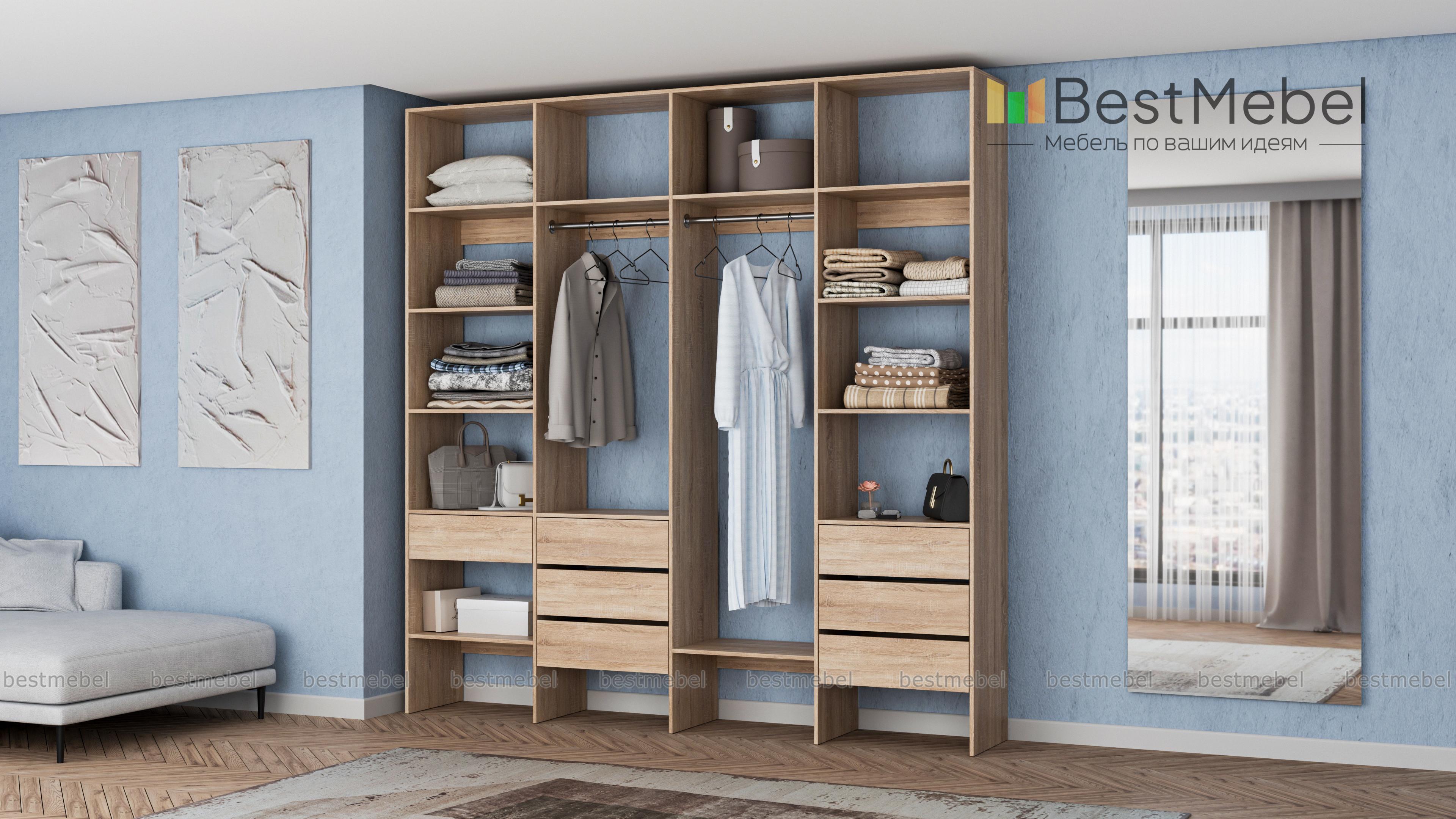 Стеллаж для одежды Мирта 67 BMS сделает пространство вашего дома легче и свободнее. Открытая конструкция объединила две штанги — под одежду разной длины, бельевые полки и удобную комбинацию выдвижных ящиков. Отсутствие декора и накладной фурнитуры в сочетании с базовым оттенком и простотой линий делает стеллаж по-настоящему универсальным. Купить стеллаж для одежды Мирта 67 BMS вы всегда сможете на сайте нашего интернет-магазина, по желанию изменив цвет и размеры.