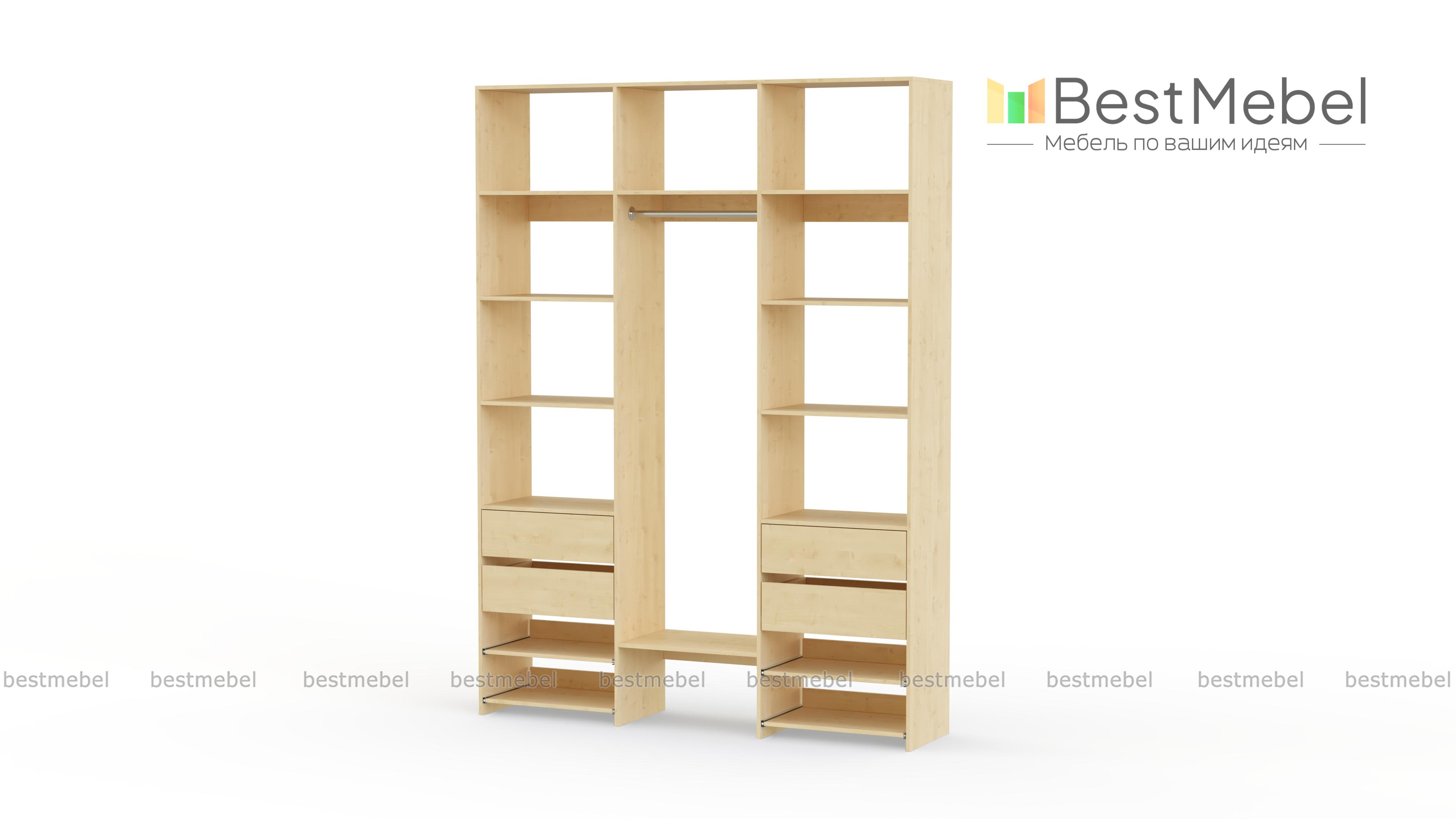 Стеллаж для одежды Мирта 94 BMS сделает удобным хранение различных предметов гардероба. Легко доставать вещи помогут вам открытые боковые и верхние секции, платяная штанга, две пары ящиков и выдвижные панели. Ламинированная плита в природном оттенке — экологичный современный материал, выдерживающий значительные нагрузки. Купить стеллаж для одежды Мирта 94 BMS вы сможете в нашем интернет-магазине, подобрав размеры и гармонирующий с вашим интерьером оттенок.