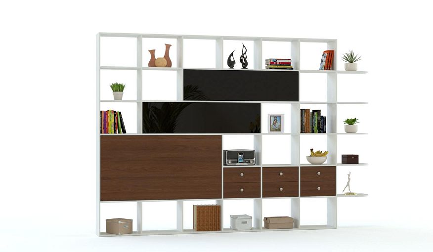 Стеллаж Лайт 3 BMS станет альтернативой стенке в интерьере современной гостиной. Крупногабаритная, но при этом не громоздкая, модель оборудована открытыми и глухими секциями, шестью выдвижными ящиками для хранения мелочей, а также угловыми радиусными полками. Уютной сделает атмосферу сочетание древесного и ярких глянцевых оттенков. Купить стеллаж Лайт 3 BMS для размещения книг, посуды, бытовых вещей и декоративных предметов вы сможете в нашем интернет-магазине.