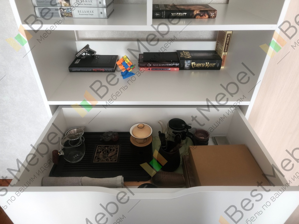 Именно этот дизайн стеллажа подошёл по моим надобностям. И что я получил в итоге?Перво-наперво, сборка была не такая простая и понятная. Инструкция в комплекте непонятная от слова совсем, благо был QR-код на 3D модель. Т.е. после сборок мебели от Ikea очень сильно отличается инструкция.Зазоры. В некоторых местах заметны небольшие просветы, даже после того как многие получилось подтянуть.И последнее плохое, то-ли при доставке, или изначально: на стойке есть след дефекта как-будто провели чем-то острым, но след неглубокий (которую расположил плохой стороной к шкафу). Это мелочи, но не приятно.К хорошему :)Удобства конструктора на сайте. Ты можешь буквально всё изменить, а потом ещё и запросить объёмный вариант, чтобы представлять что получится в итоге. Добавить другие направляющие, подсветку и т.п.Поддержка на уровне, на всех этапах помогала решить все нюансы.В общем и целом, рекомендую, если готовые варианты у других производителей не устраивают!