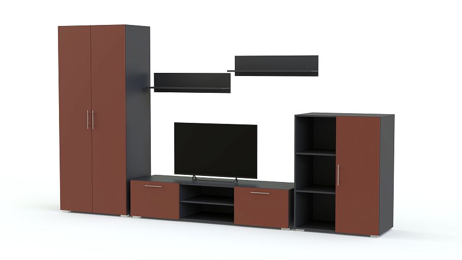 Стенка Неко 13 BMS отличается практичной модульной конструкцией, которая станет прекрасным выбором как для просторного, так и малогабаритного помещения. Комплект в современном стиле включает в себя тумбу под ТВ, комбинированный со стеллажом шкафчик, двухдверный платяной шкаф и две открытые навесные полки. Разнообразие отделений позволит разместить все необходимое, от одежды до предметов декора, а украшением домашнего интерьера станут яркие матовые фасады. Купить стенку Неко 13 BMS по доступной цене вы сможете в нашем интернет-магазине.