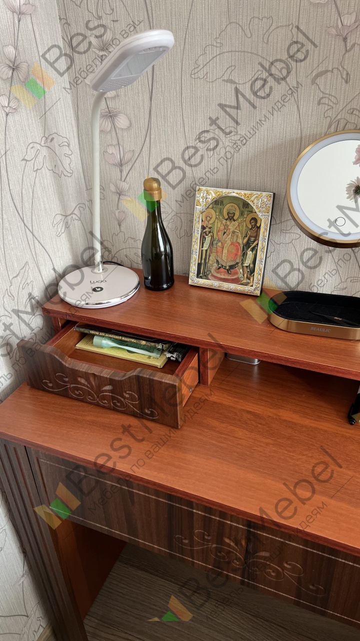 Заказ 00000330804, изделие Трюмо Жаклин Д-11 BMS (900х860х400) доставлен точно в запланированные сроки. Спасибо сотрудникам магазина за помощь в выборе трюмо и консультацию. Заказ пришел целым без повреждений и в полной комплектации. Упакован на совесть. Инструкция по сборке позволила без проблем самостоятельно собрать трюмо. Качество соответствует цене и ожиданиям.