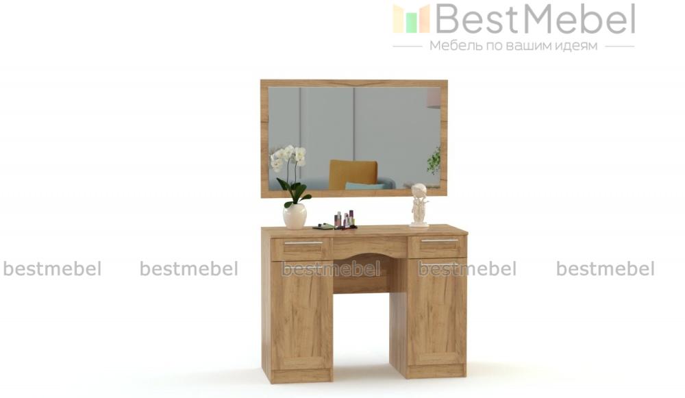 Туалетный столик СП-4566 BMS поможет разместить большое количество уходовых средств, декоративной косметики и важных мелочей благодаря своей продуманной комплектации. Модель, выполненная в трендовых древесных оттенках и декорированная классической фактурой фрезеровки, оборудована двумя выдвижными ящиками, двумя распашными отделениями с полками и широкой столешницей, у которой вы сможете с удобством расположиться во время нанесения макияжа или укладки волос, а навесное зеркало прямоугольной формы гармонично дополнит композицию. Купить туалетный столик СП-4566 BMS приглашаем в наш интернет-магазин.