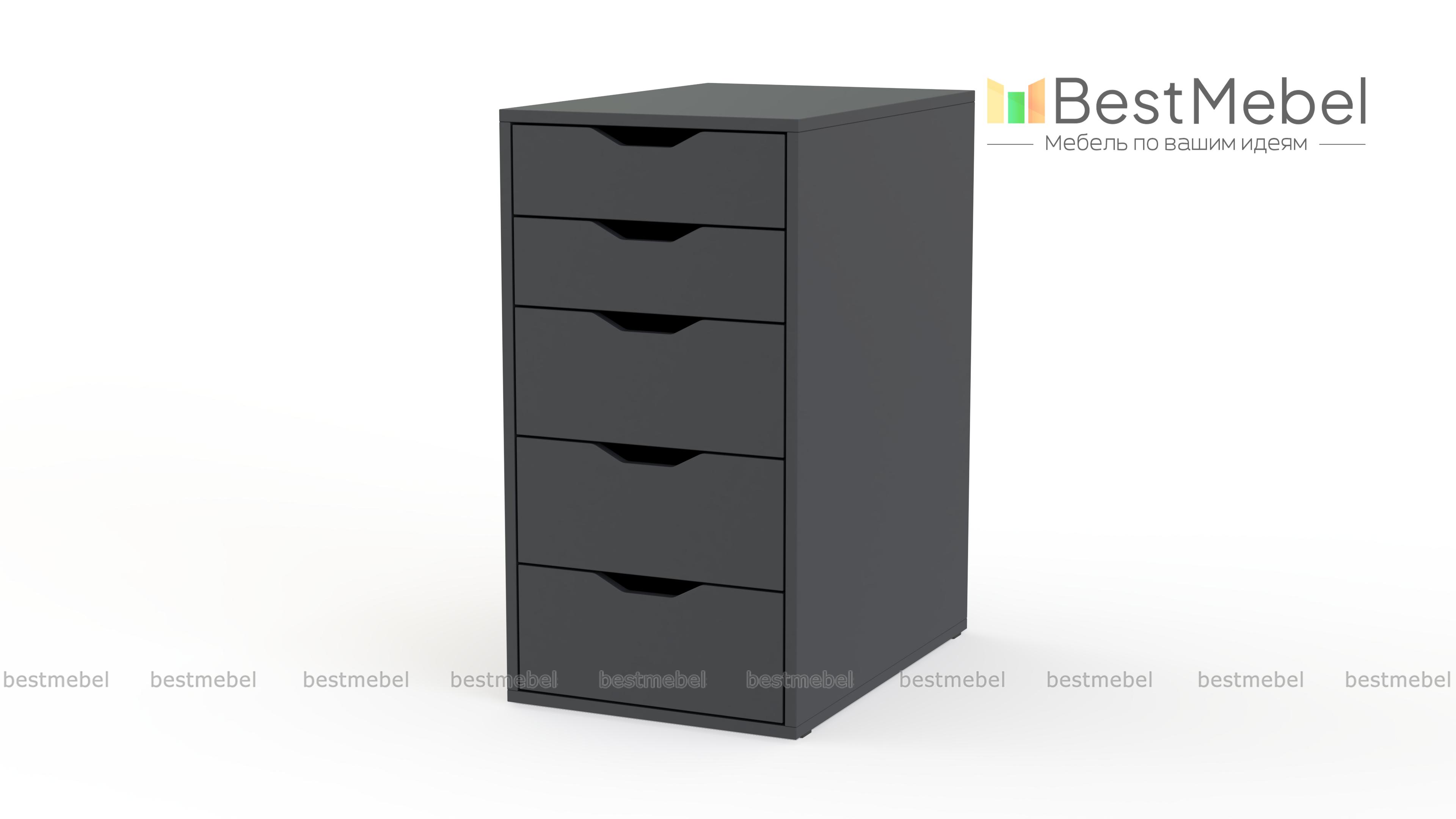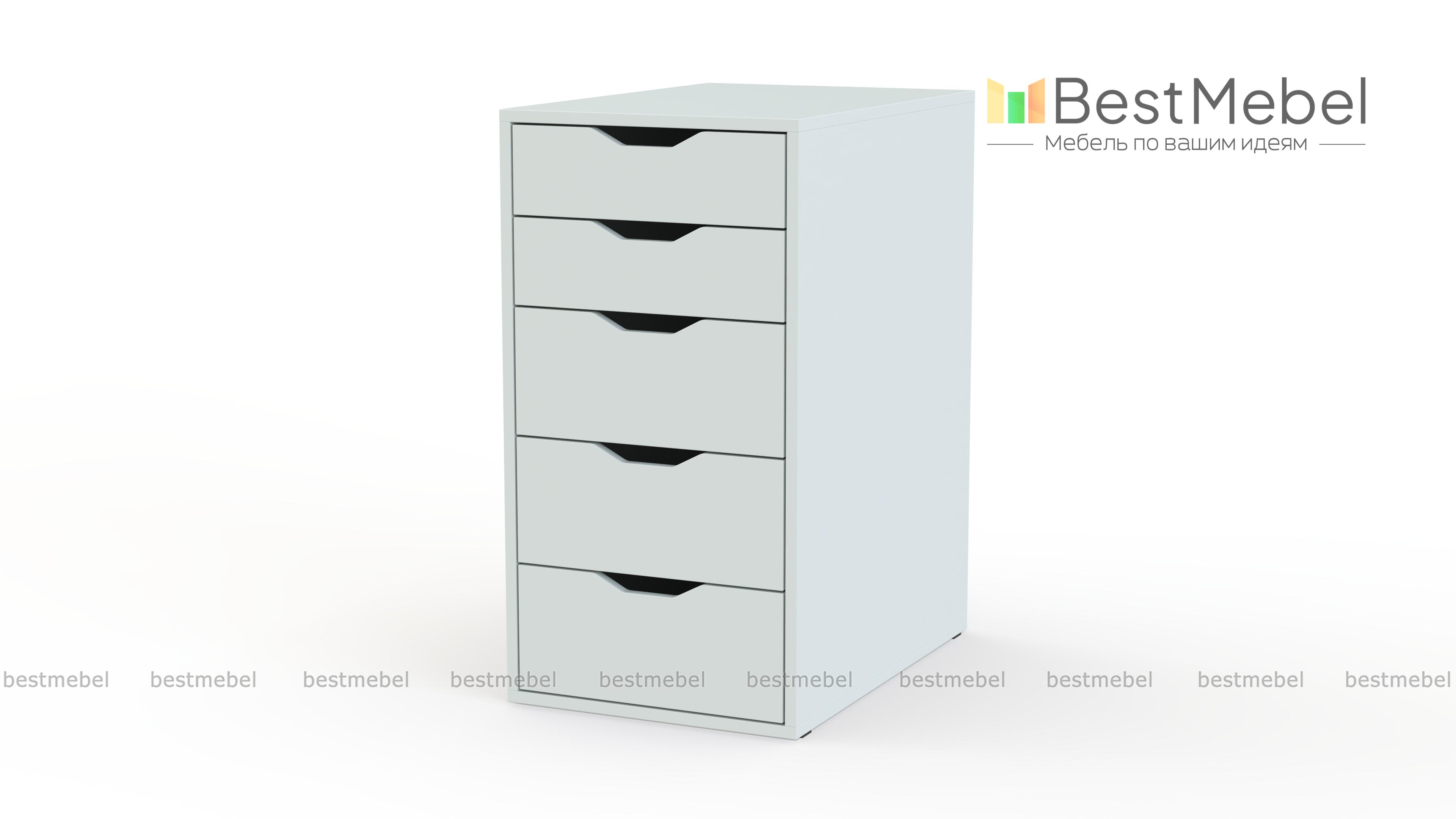 Тумба Алекс Alex 1 с функциональным современным дизайном предназначена для обустройства рабочего пространства дома или в офисе. Глубокие ящики тумбы – три больших и два малых, идеально подходят для хранения бумаг и канцелярских принадлежностей. Широкие трапециевидные вырезы в качестве ручек не только удобны, но и придают конструкции яркую индивидуальность. Купить тумбу Алекс Alex 1 в одном из базовых цветов вы сможете недорого в нашем интернет-магазине. Выбирайте мебель в стиле IKEA (ИКЕА) от производителя BestMebelShop!