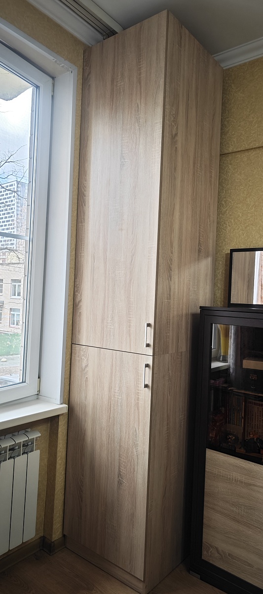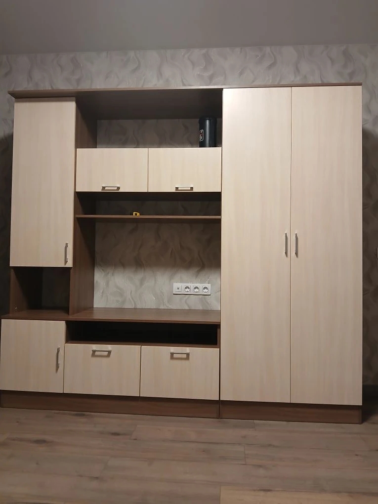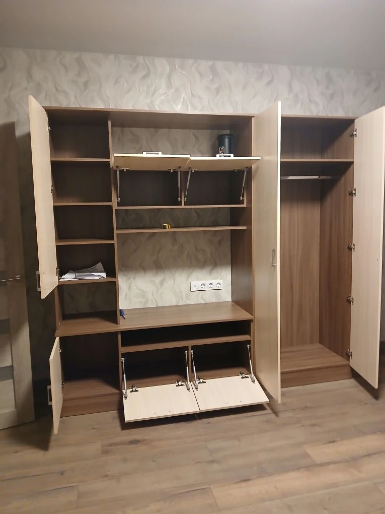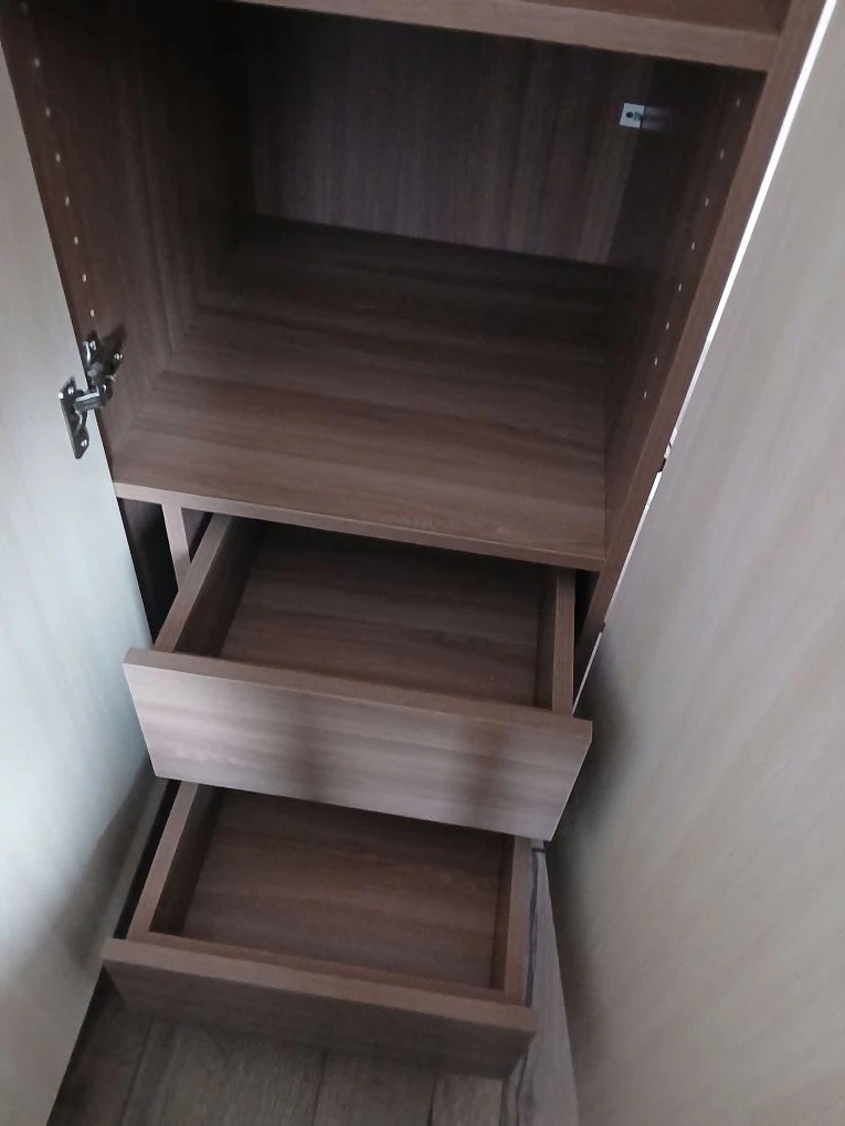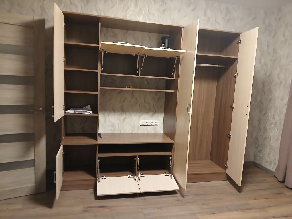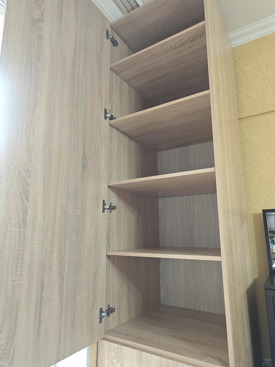 Хорошая прихожая за свою небольшую цену. Но есть нюанс: при максимальной ширине прихожей в 1,4 м горизонтальная ДСП, на которую предполагается садиться завязывать шнурки, заметно прогибается под весом садящегося. Теоретически может и треснуть. Явно по её середине требуется промежуточная вертикальная подпорка (из 2-х частей: от пола до нижней полки, и от полки до сиденья). Сделать самому такую подпорку, закрепив на уголки, не вижу проблемы, благо мебельные щиты стандартных цветов продаются. Для стандартного же варианта ширины (90 см) такая доработка, скорее всего, не потребуется.