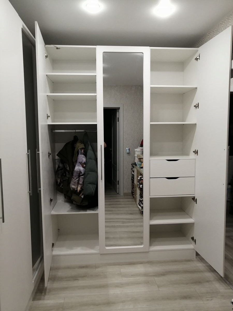 Я в восторге! Это уже второй шкаф от компании! Здесь нужен был по моим параметрам в угол ( 172×230×238 см). С моими заморочками по полкам и штангам, чтобы двери друг друга не били ( поставили ограничитель на раскрытие). Чтобы зеркала там, где надо. Начиная от менеджеров по телефону до конструкторского отдела — все умнички и умницы! Все внесли, согласовали, сделали. Привезли в пятницу и уже в субботу готовы были собрать )) Все на уровне выше всех похвал!Ребят, процветания компании и побольше заказов!