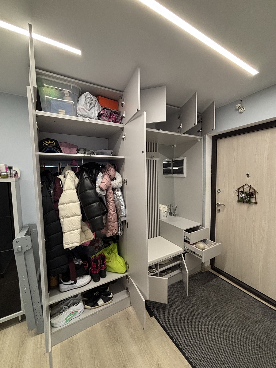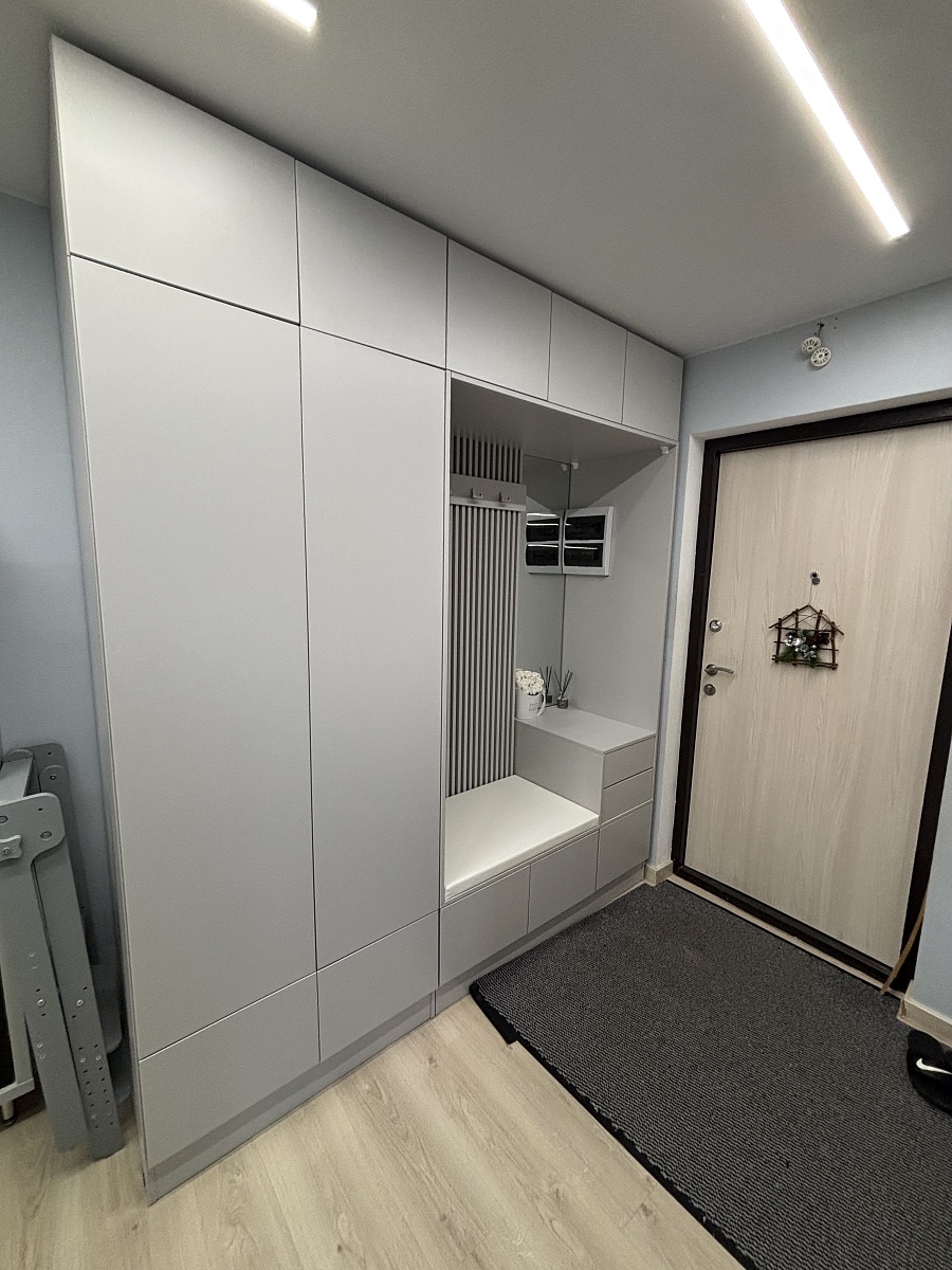 Отличный шкаф, конечно как всегда плюс что можно по своим размерам заказать. В коридоре встал как влитой.
