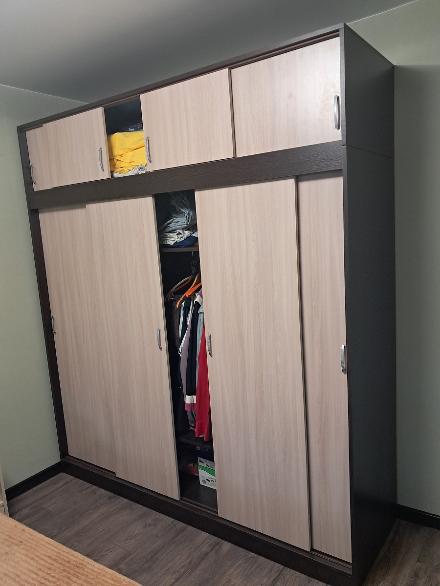 Заказ №1193895. Плюсы: Возможность выбора размеров, наполнения (полки, ящики и т.д.), цвета, фурнитуры. Бесплатная доставка в согласованное время. Качество подготовки - не требуется подгонка и спец инструмент для сборки. Минусы: не обнаружены.