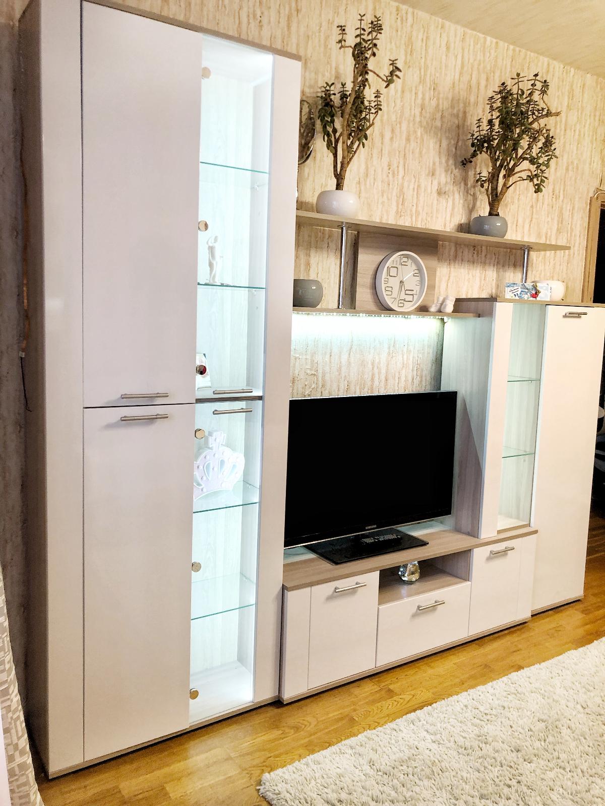 Стенка с точки зрения дизайна выглядит неплохо, даже очень хорошо , отлично! Очень понравился фасад стенки “белый металлик глянец”. Сначала думали и боялись что металлик будет в действительности «металлическим»цветом серым или как на примере белым как холодильник,оказалось все намного лучше, оказалось на глянце белом серебристые блестящие крапинки, очень красиво, увидите на фото.Что касаемо габаритов стенки очень удобно подобрать размер под свой метраж комнаты. Но чем шире или выше мебель тем выше цена, ниже соответственно ниже цена. Качество соответствует цене. Нам например ненужен шкаф из дорогих пород дерева, за огромную цену. Можно взять дешевые варианты совместить и ничем не будет отличаться от конкурентов например, бюджетно скромно и со вкусом. Был один минус провозились со сборкой ито в связи с тем что инструкция настолько мелкая что иной раз было непонятно какая куда полка крепится , два раза приходилось переделывать, перепутали дно с полкой под телевизор и ещё ,что -то было с держателями полок разбирали заново конструкцию вобщем это не Лего собрать😊.Кто хочет поломать голову и позаморачиваться можете рискнуть😊А так если надоест можно поменять обновить интерьер через несколько лет... а не жить с одной мебелью всю оставшуюся жизнь как было при советском союзе😊😬, . ценовая политика приемлема, как говорится все для людей, нежели на других сайтах , да и подгона размеров практически нигде нет, за что -огромное спасибо bestmebelshop!